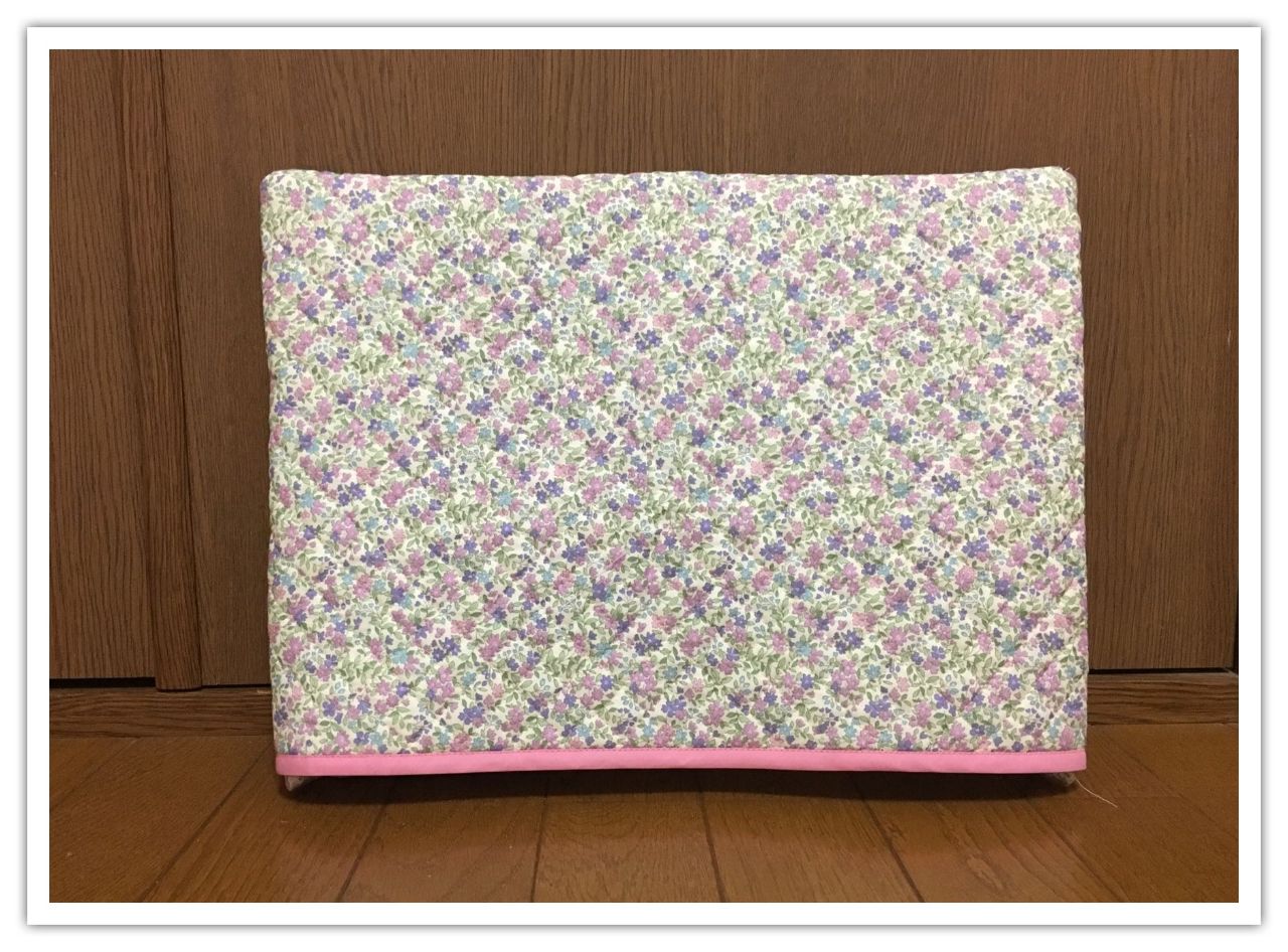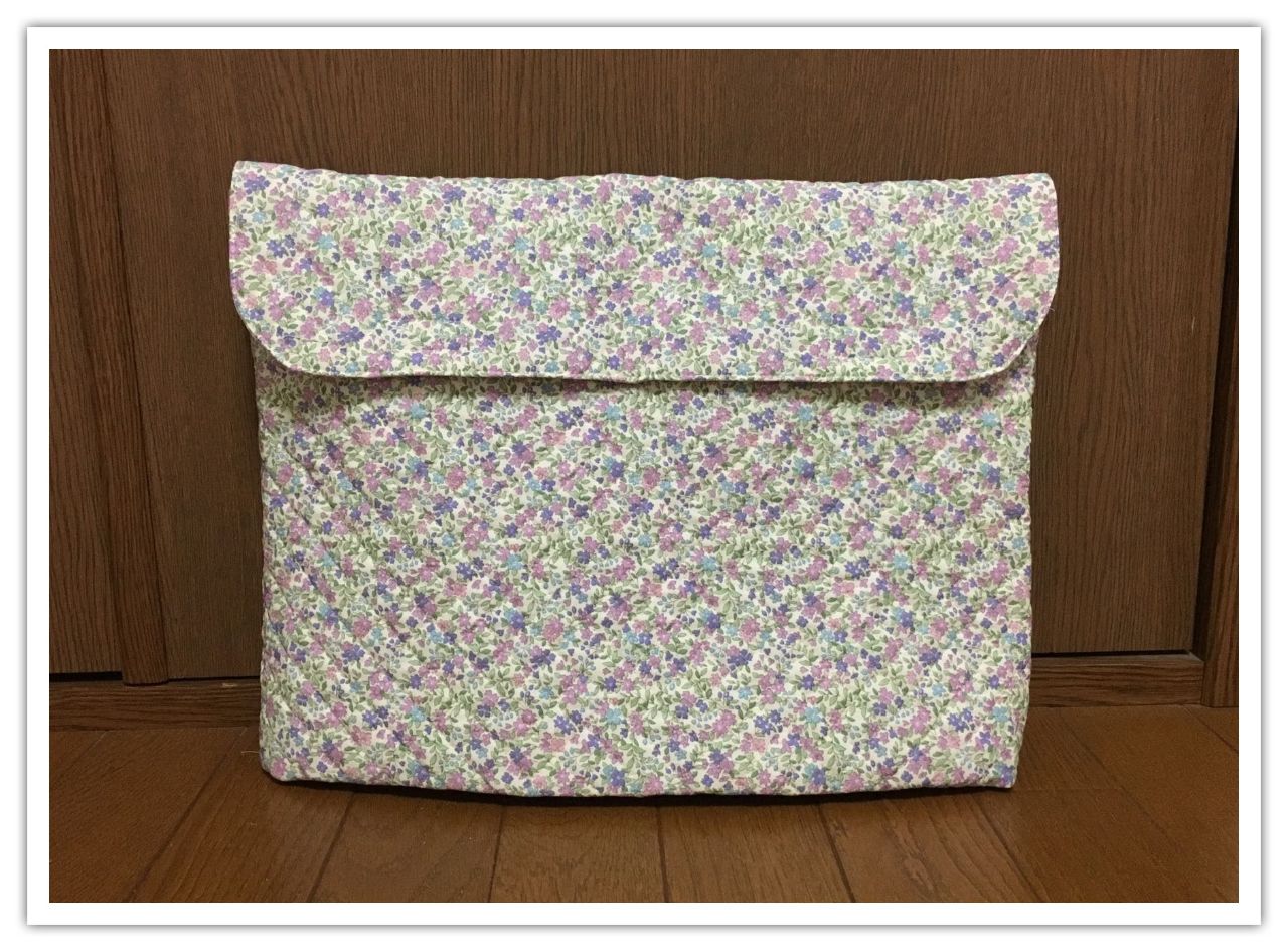 (3)写真のように本体を中へ半分折り込み、両サイド(1cm)を縫います
