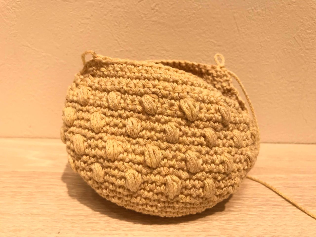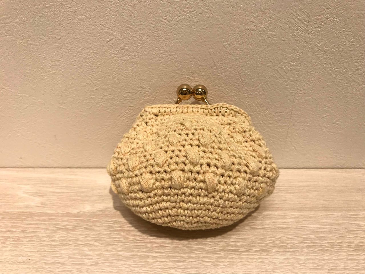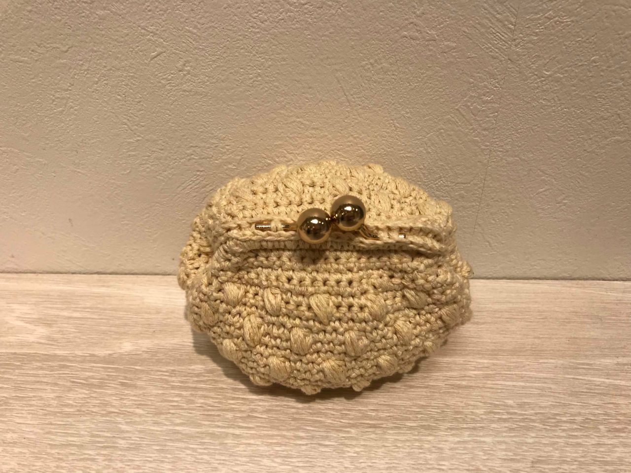 玉編みがかわいい、コロンとした形の本体に、口金を編みつける!編みつける口金ほんと簡単で好き!楽しいです!