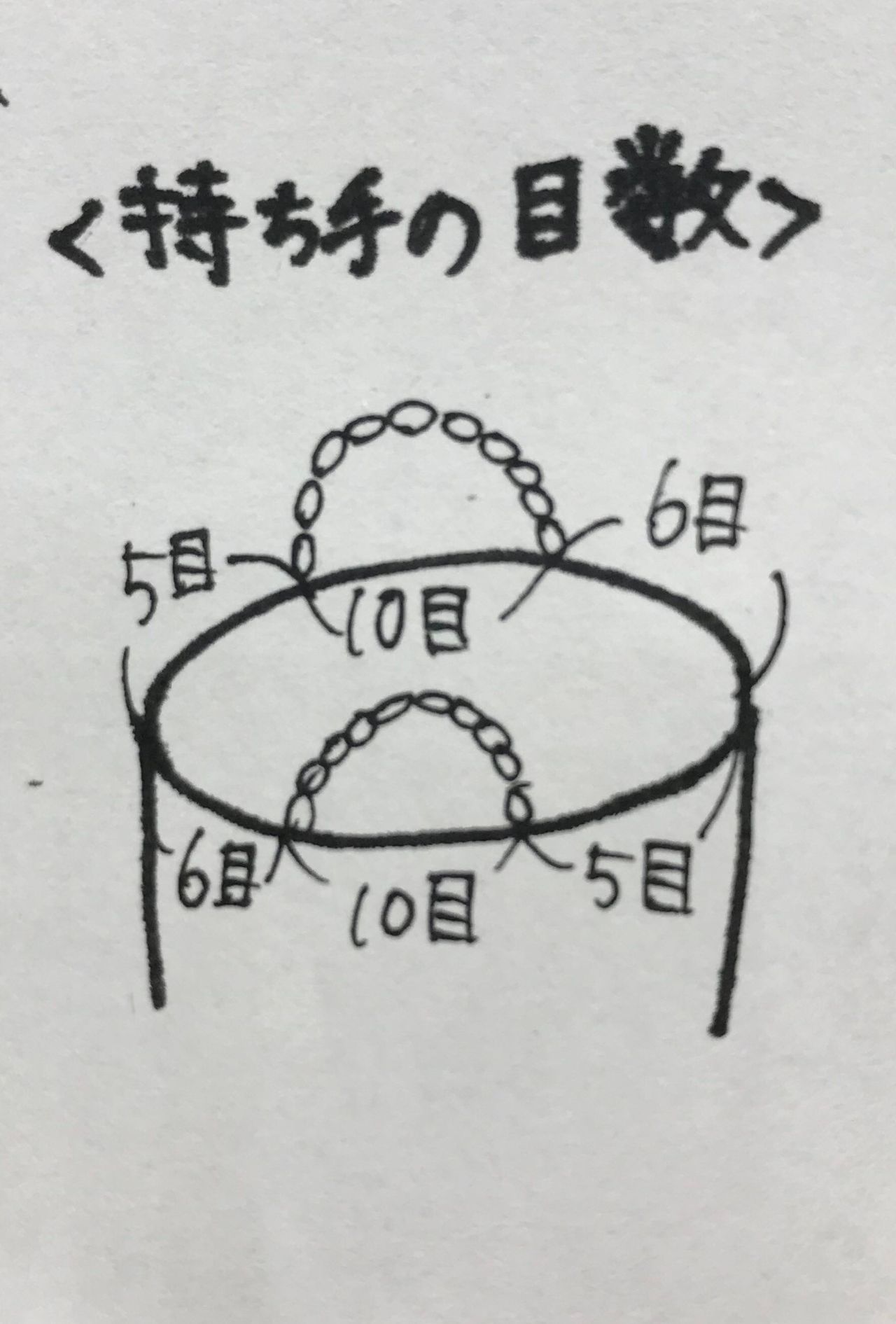 10.19段目は表側から編み、持ち手を作る段です