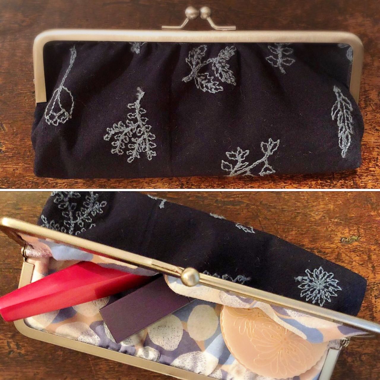 こちらの刺繍生地、素敵すぎてさっそくがま口ポーチを作ってもらいました!