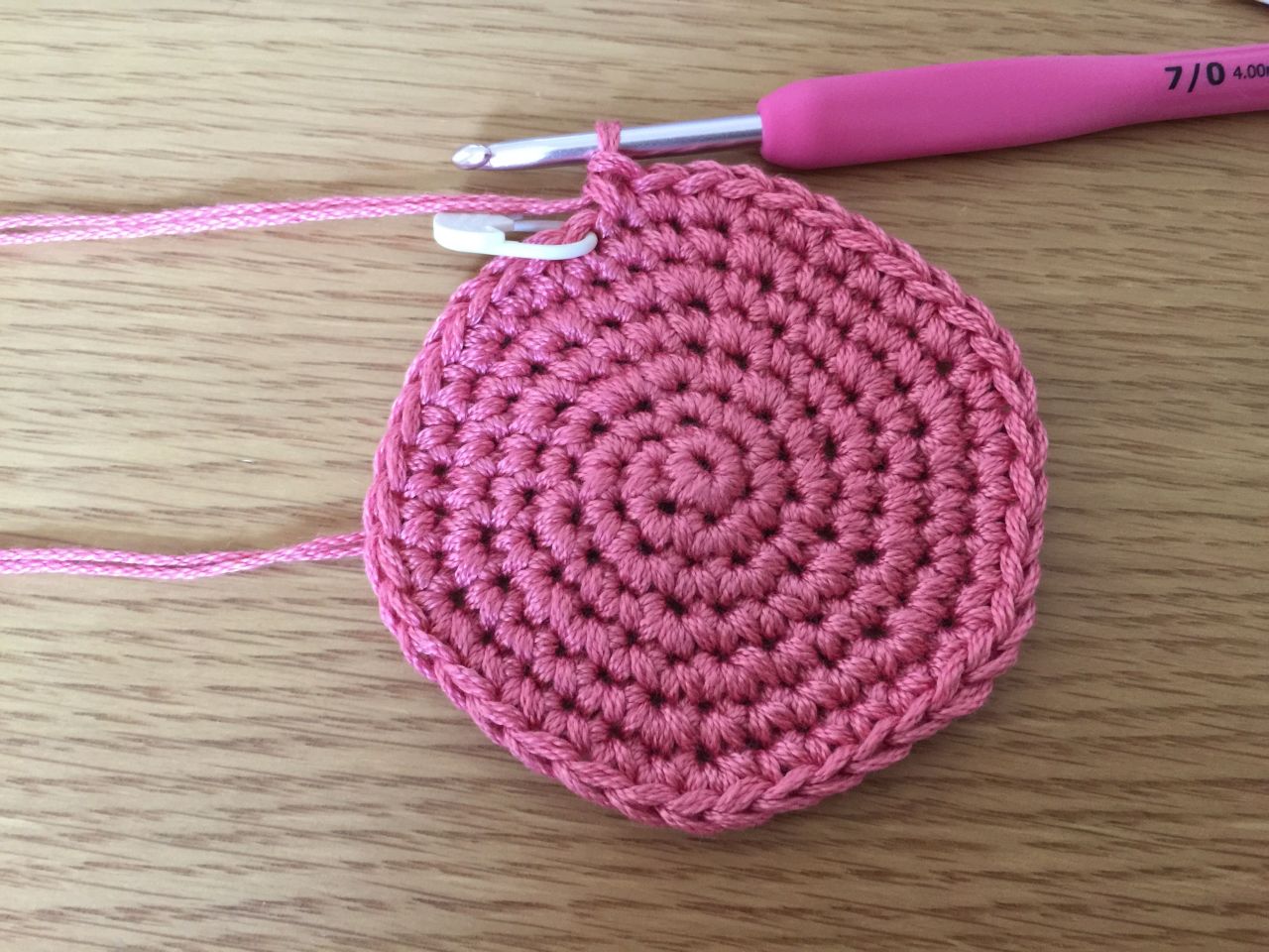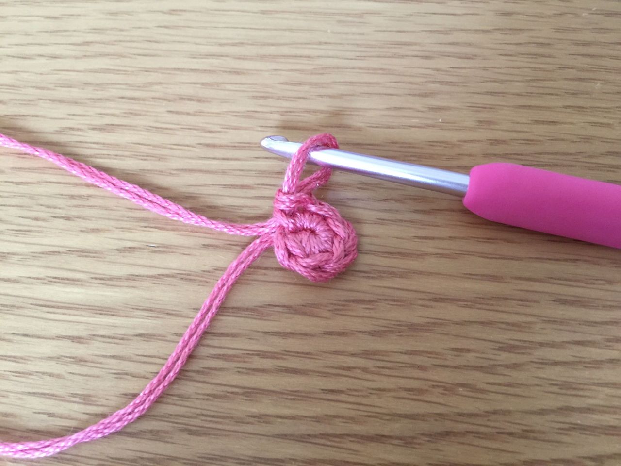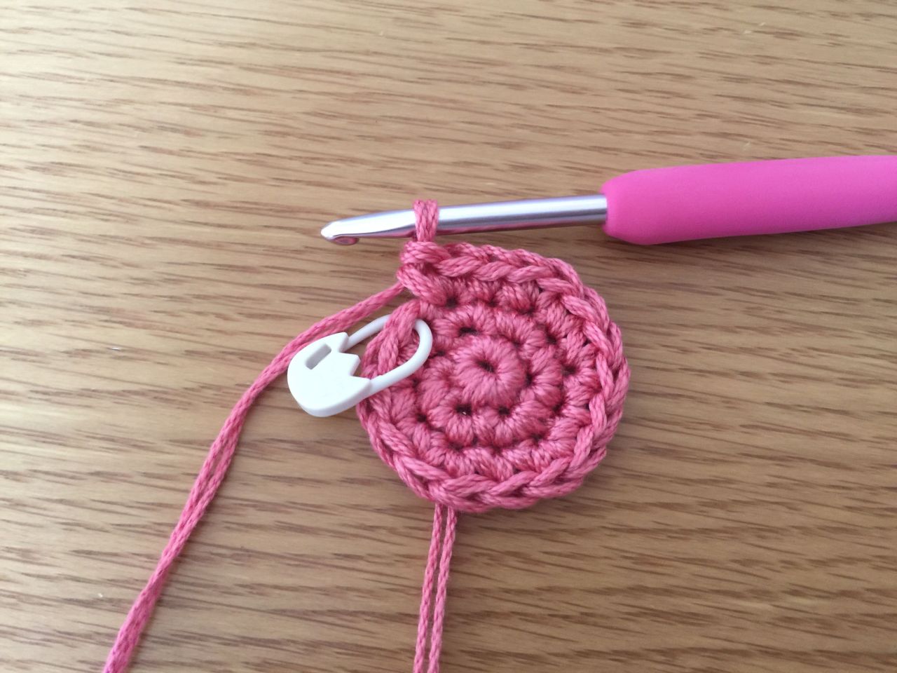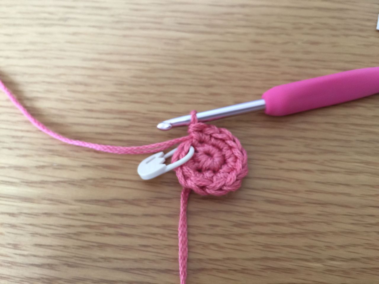 6 最後は最初の鎖編みに引き抜いて、糸始末をして完成です♪