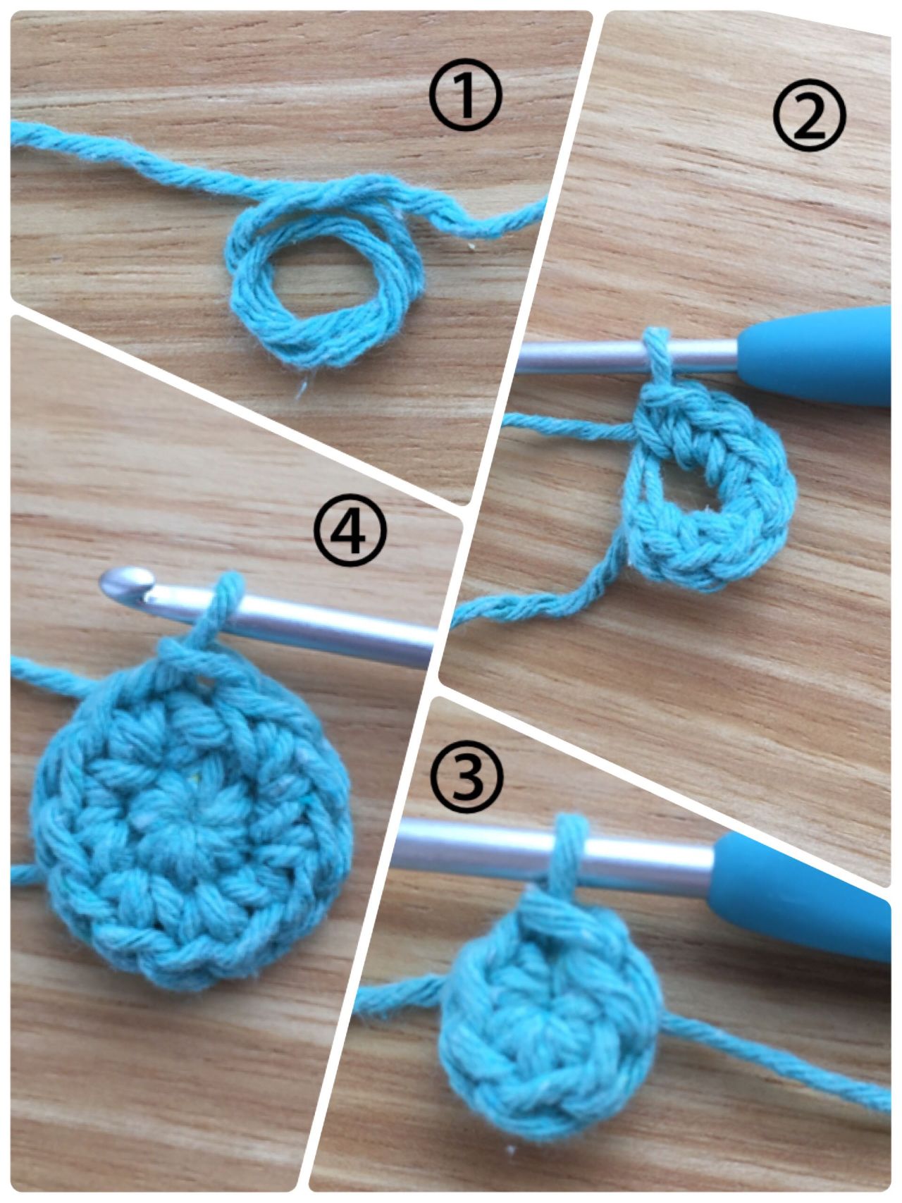 ④ 2段目は1段目の細編みに各2目を編み12目となります。