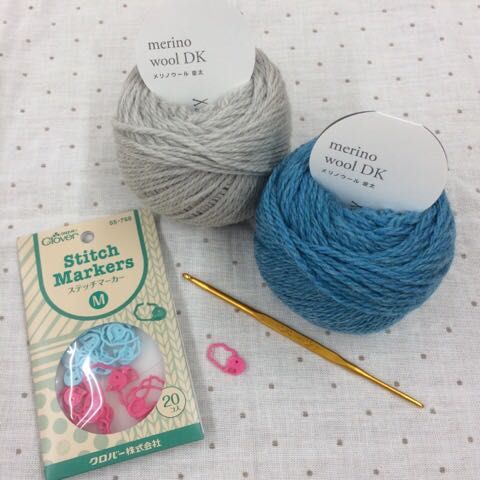 A色は段数マーカーを付けて、編み目がほどけないようにしましょう。