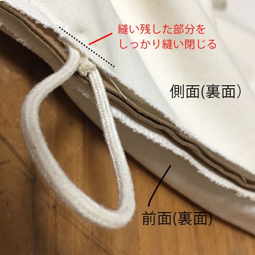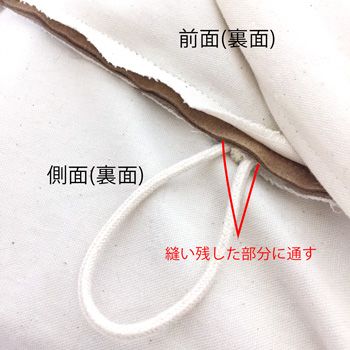 *その際、前面のみ紐を通す部分を縫い残しておきます。