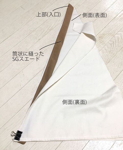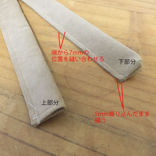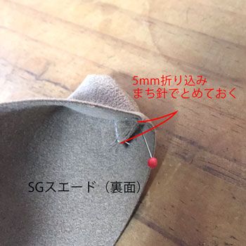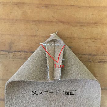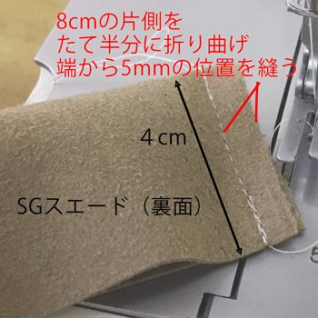 6)SGスエードの上部を1cm折り曲げて縫います。