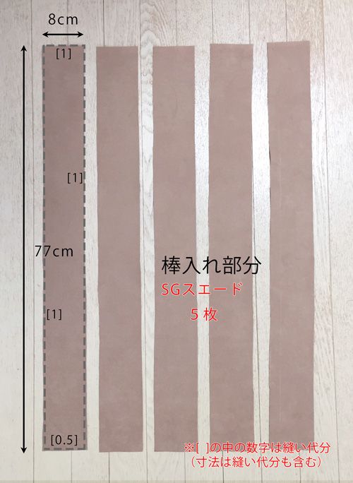 11)SGスエードとオックス生地を重ね、端から1cmの箇所を縫い合わせます。
