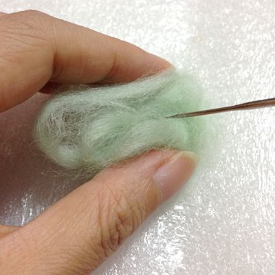 1.羊毛を軽くほぐしたら、丸くまとめます。