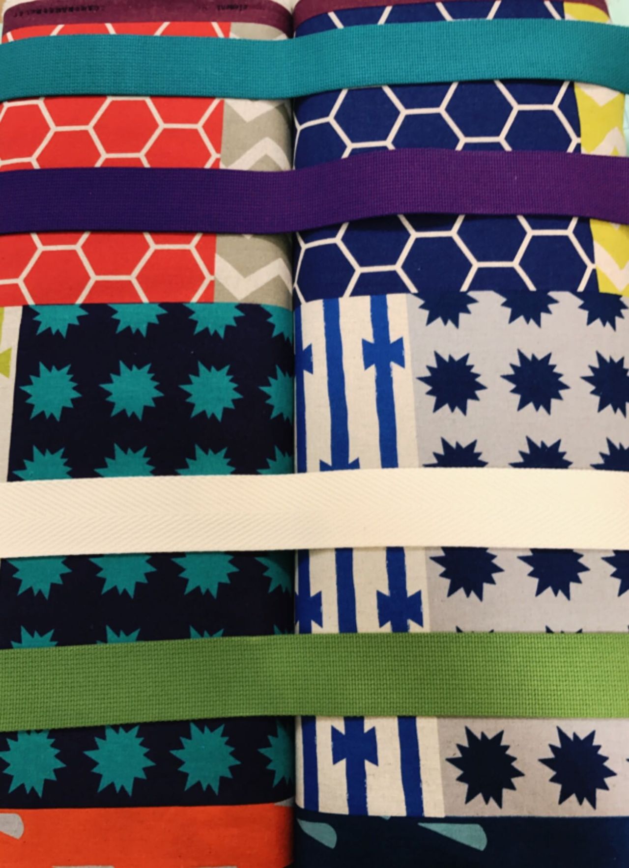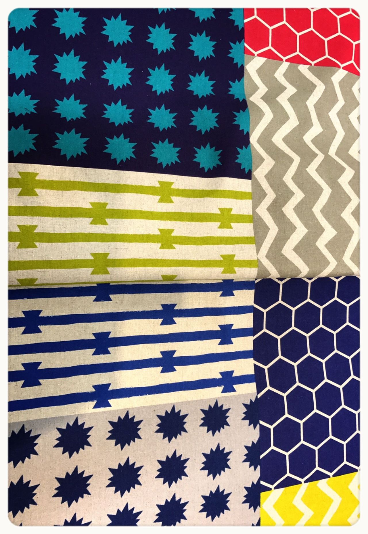 蜂の巣やジグザグなど色々な柄がパッチワーク状に入っていて賑やかです!