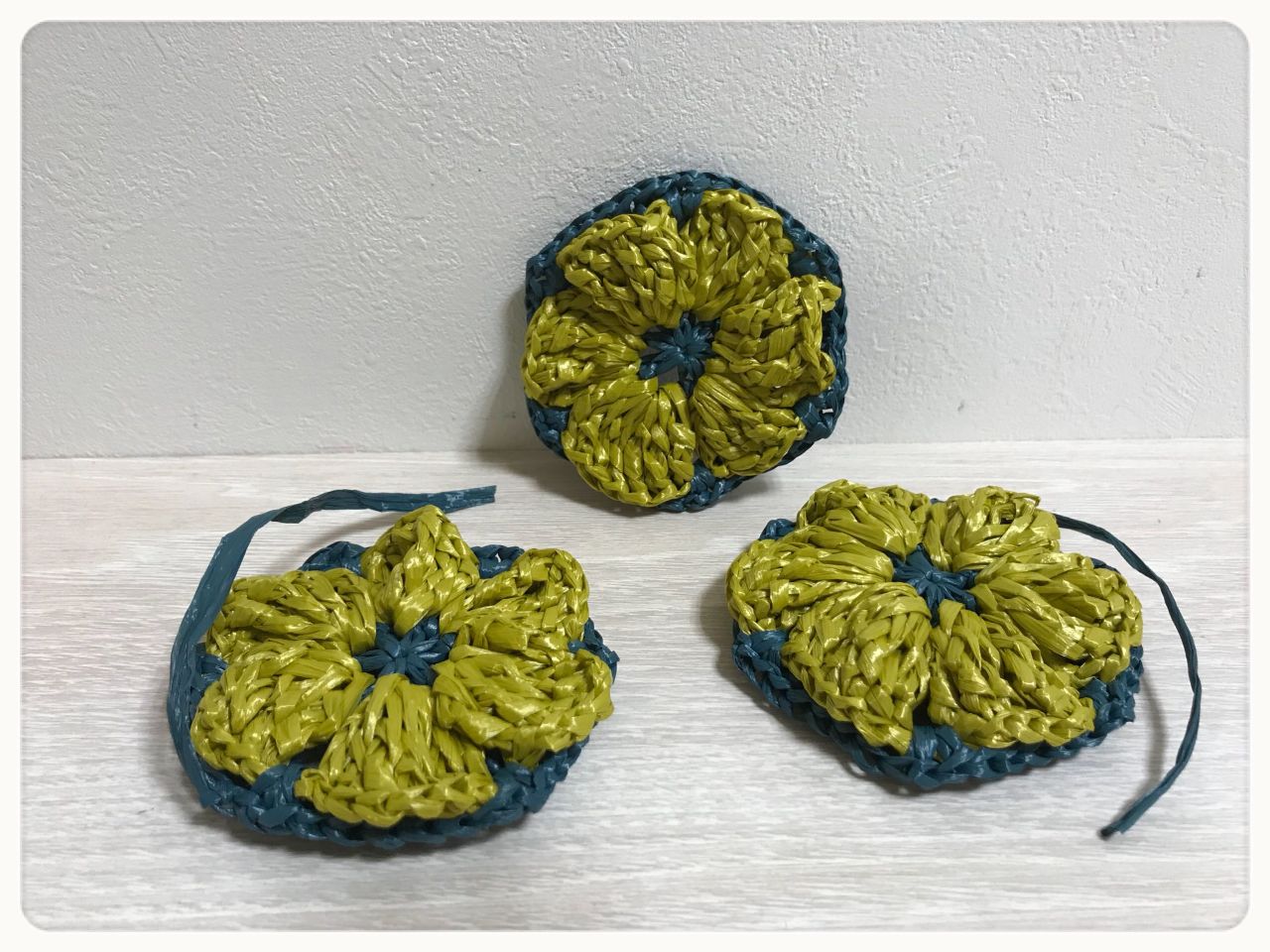 かぎ針でこま編み、すじ編みしながら繋げるので、たくさんあっても楽しく編めました!