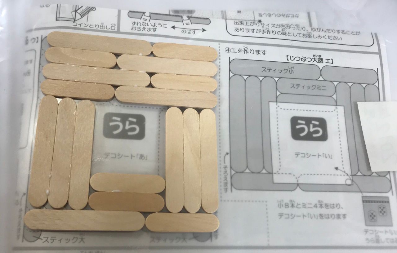 さっきのアイスの棒達と組み立てていくと…