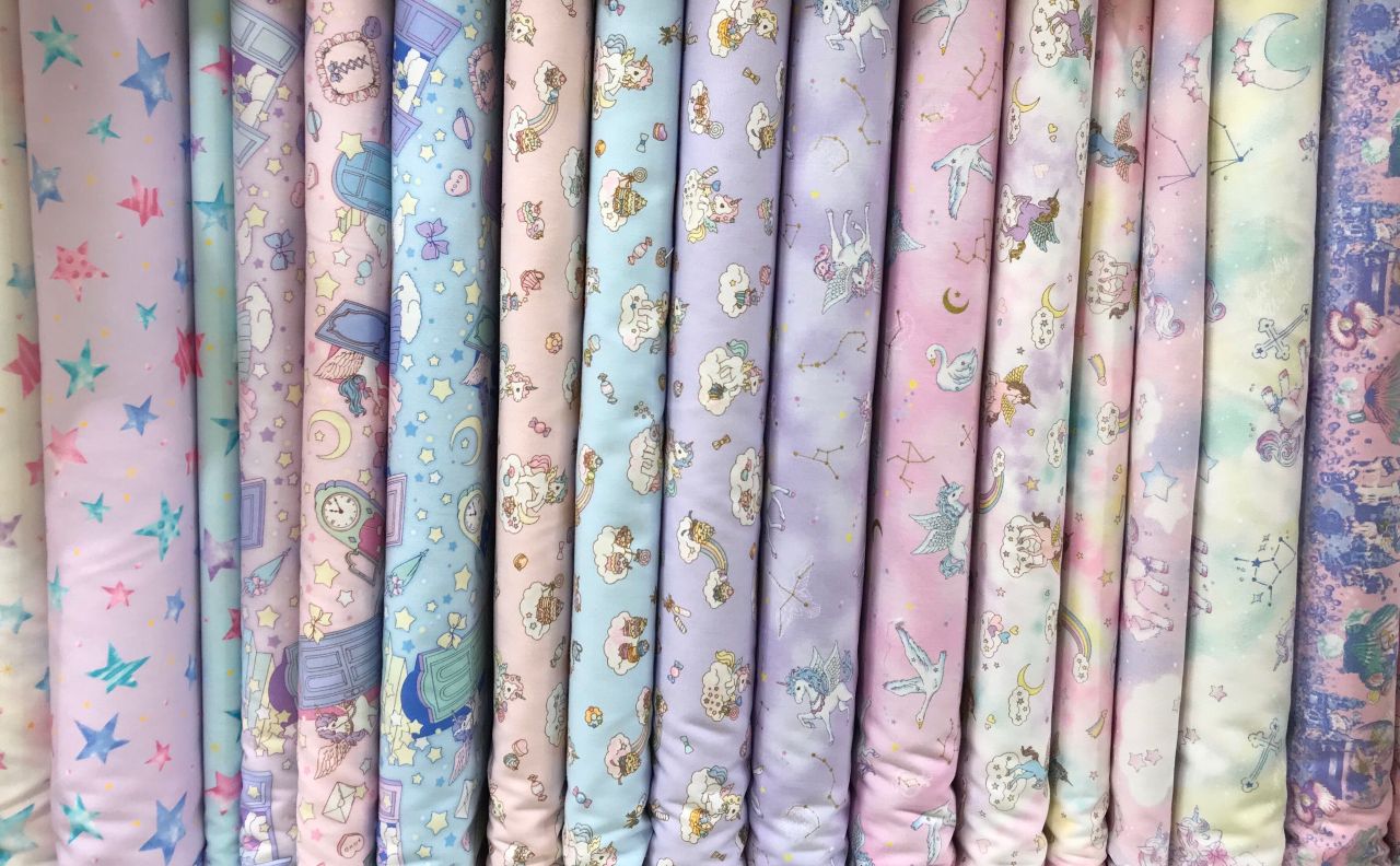 人気のユニコーン柄等のゆめかわ系の生地の取り扱いもございますので合わせて使ったり、色違いで持つのもオススメです♪