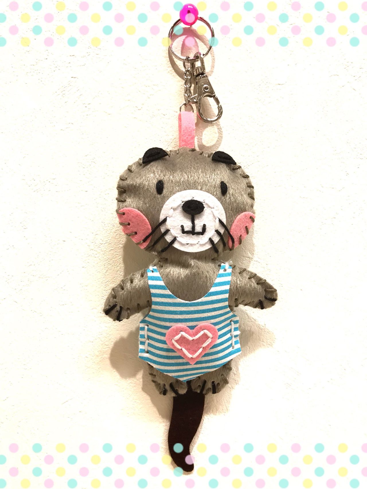今回入荷したソーイングキットは、あらかじめカットされたフェルトを縫って、動物のキーホルダーが作れます。『ラッコのロミー』を作ります。