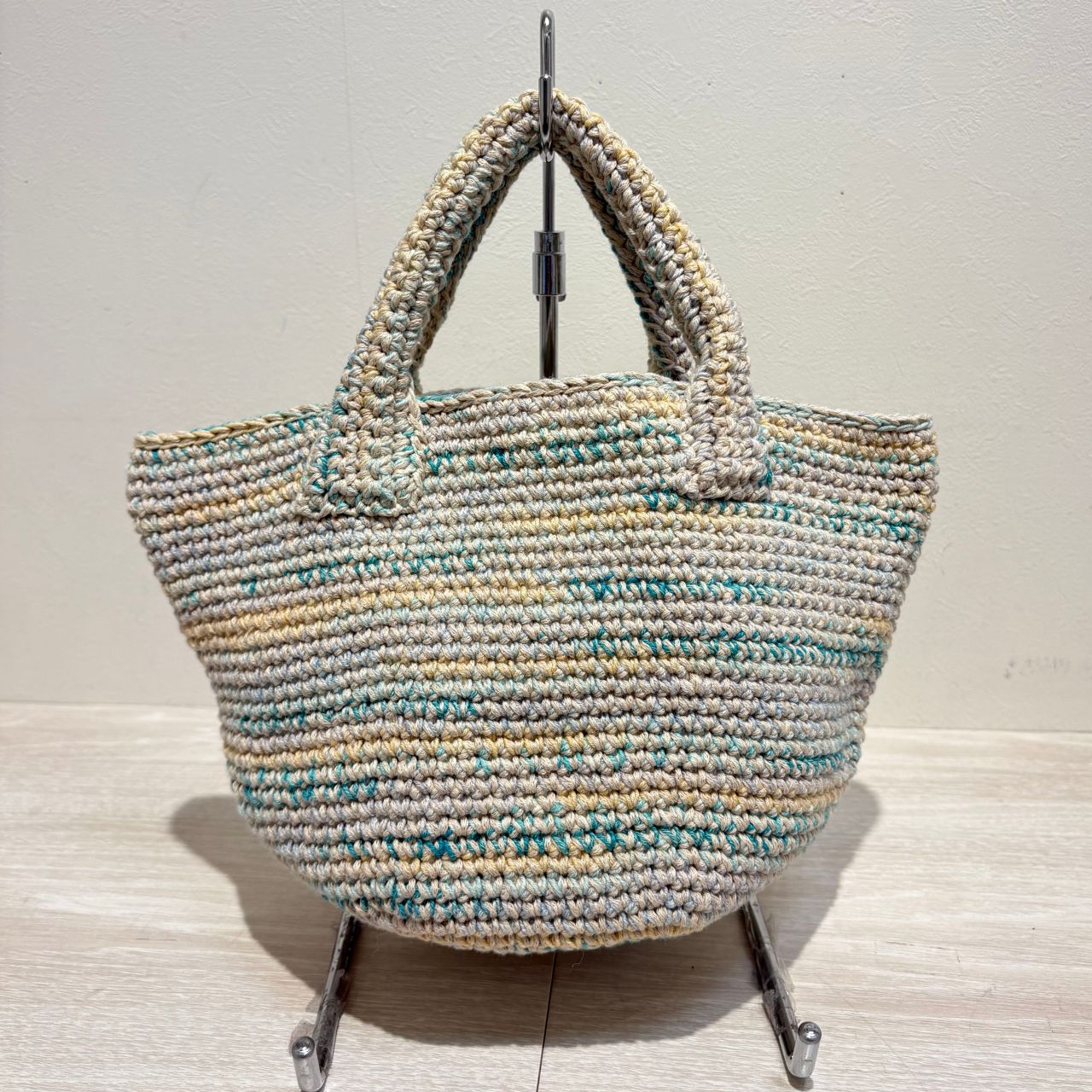 こちらのトートバッグは2種類の糸を引きそろえて編んだものです。引き揃えて編むとは、2本以上の異なる糸を、一本の糸のようにして編む手法です。