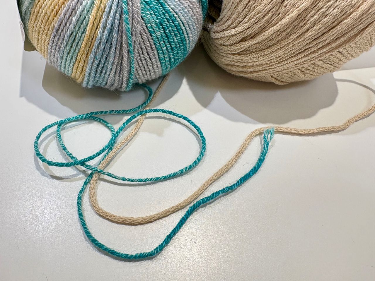 どちらもストレートヤーンなので、2本引き揃えても編みやすかったです。