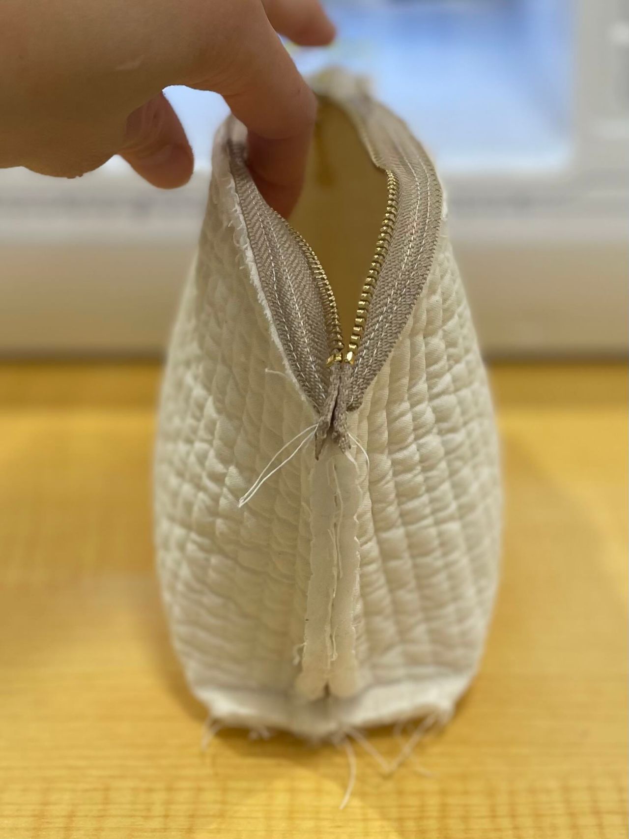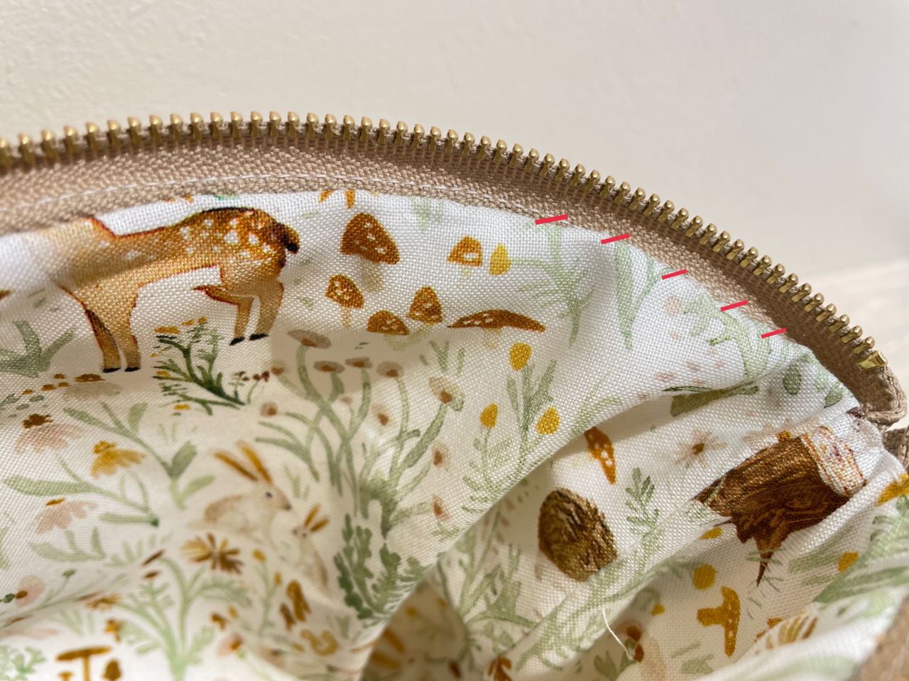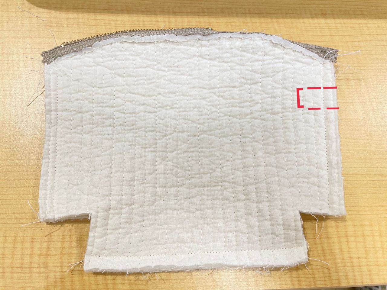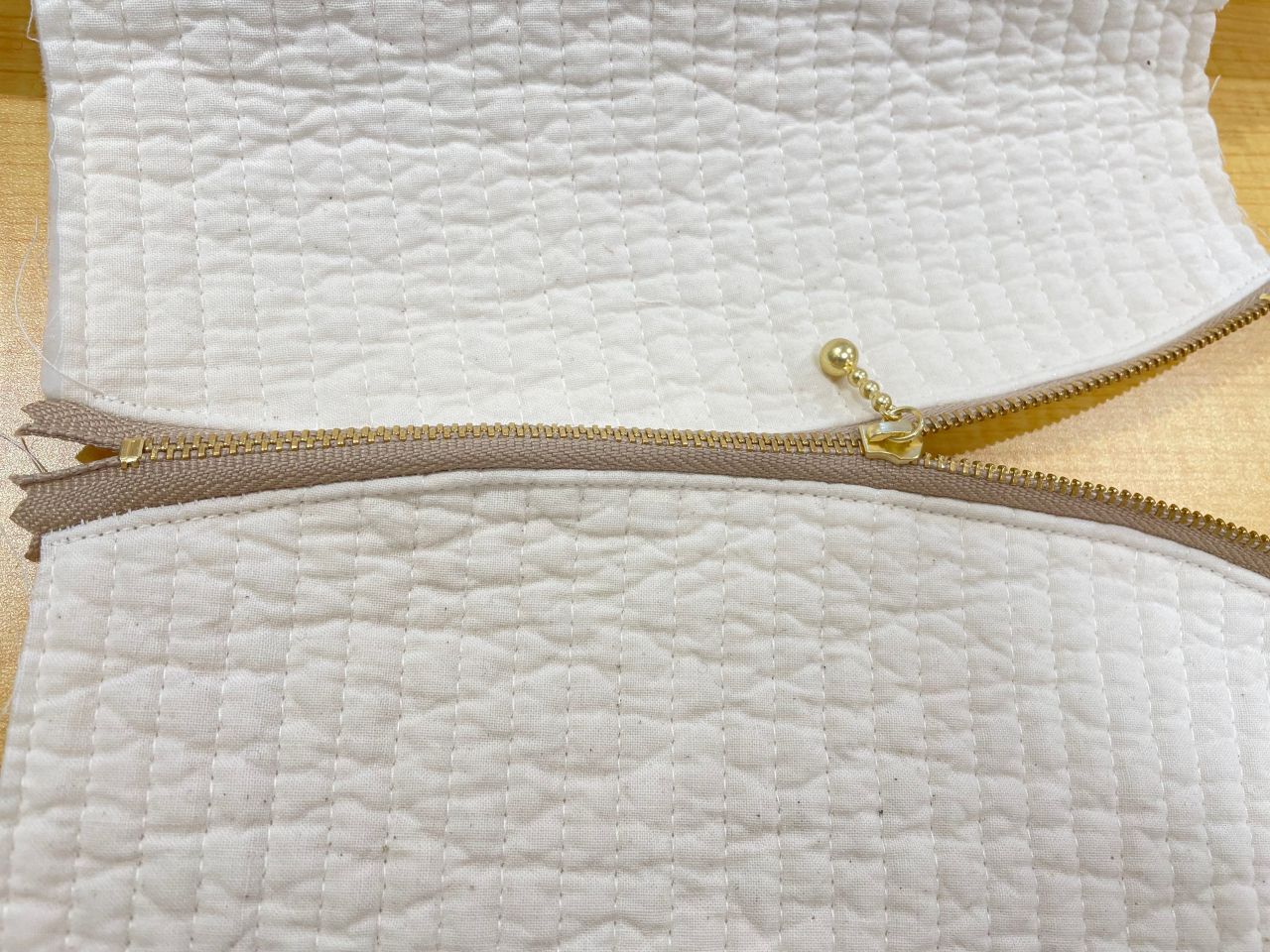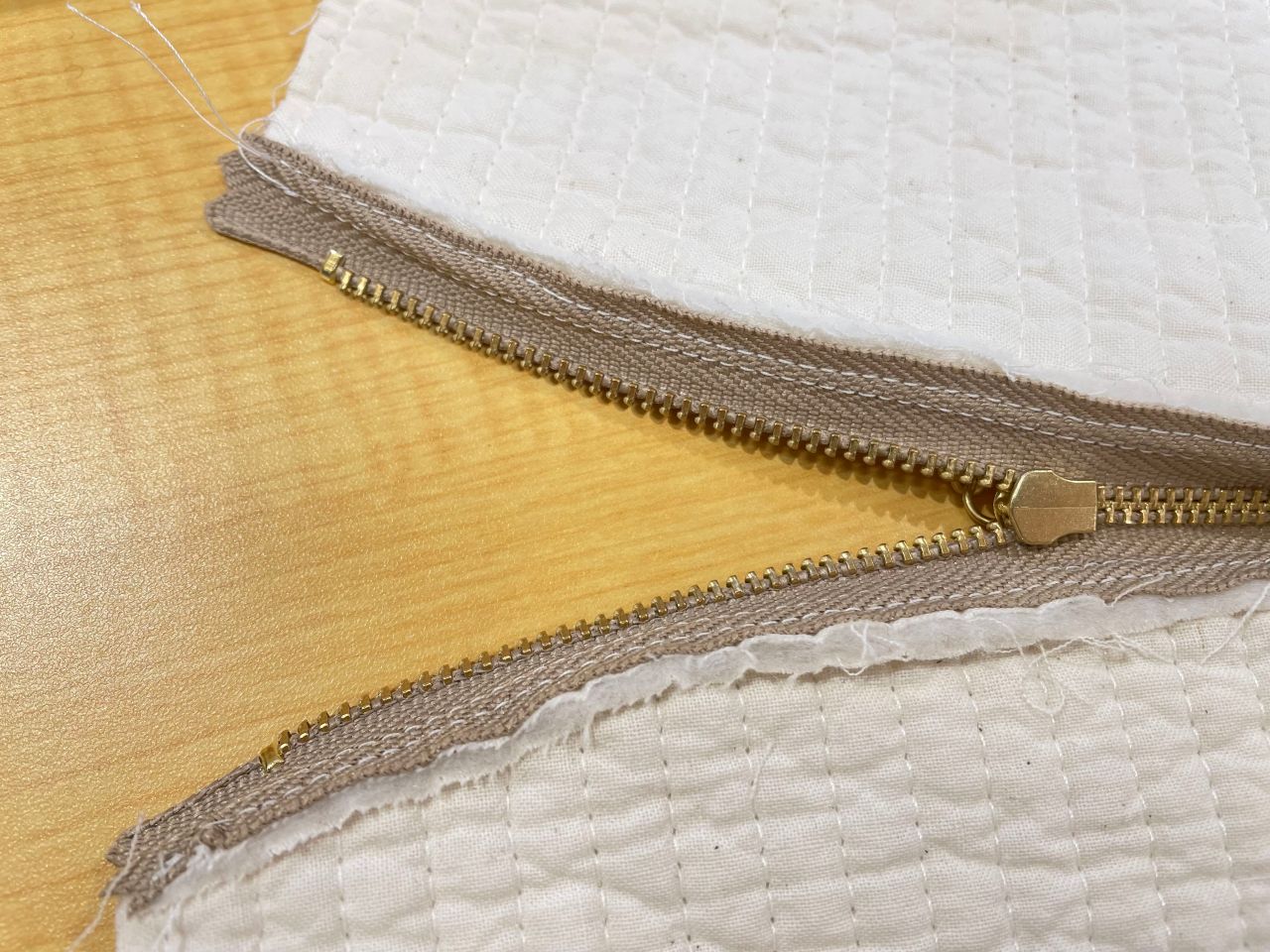 表袋に裏袋を重ね、ファスナーのところでまつります。