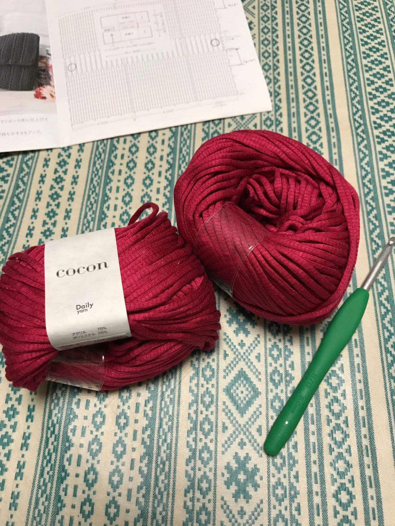 オカダヤオリジナルの『cocon』軽くて編みやすい糸でした!ポシェットは累計6時間位で完成しました。