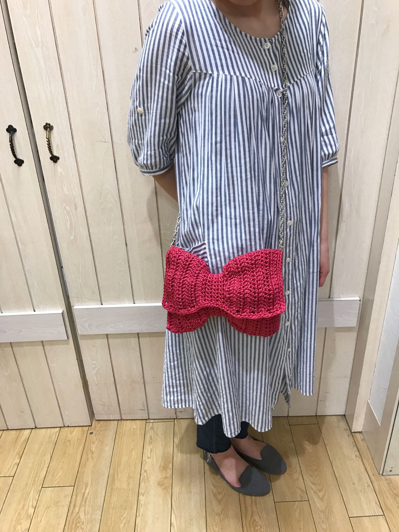 ママとお揃いコーデも!coconで編むリボンポシェット