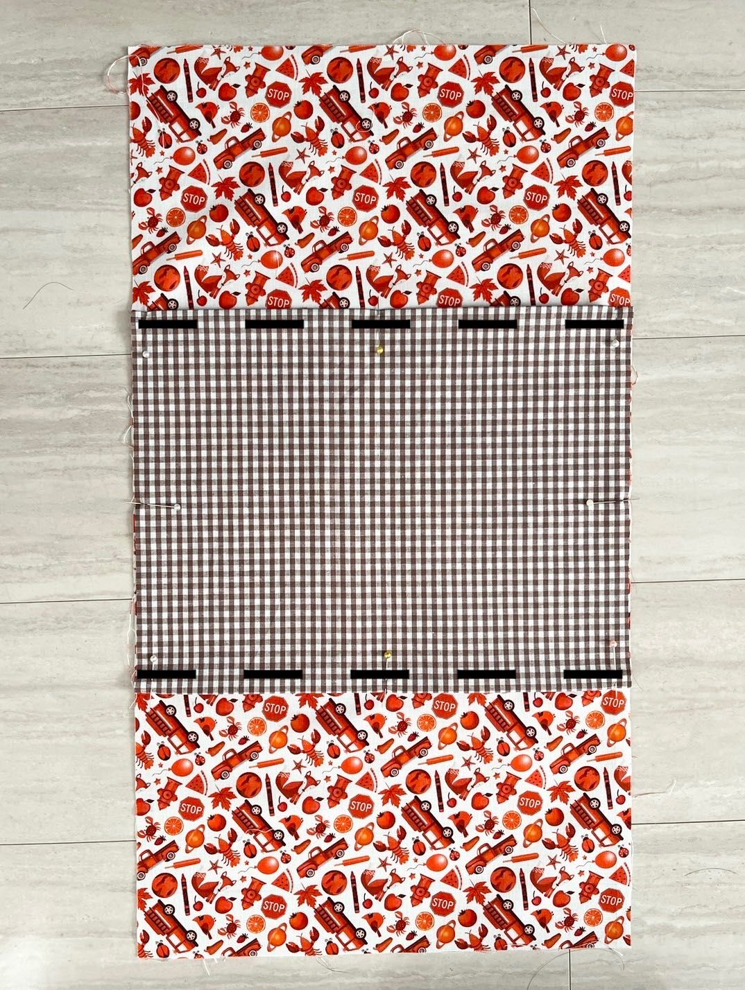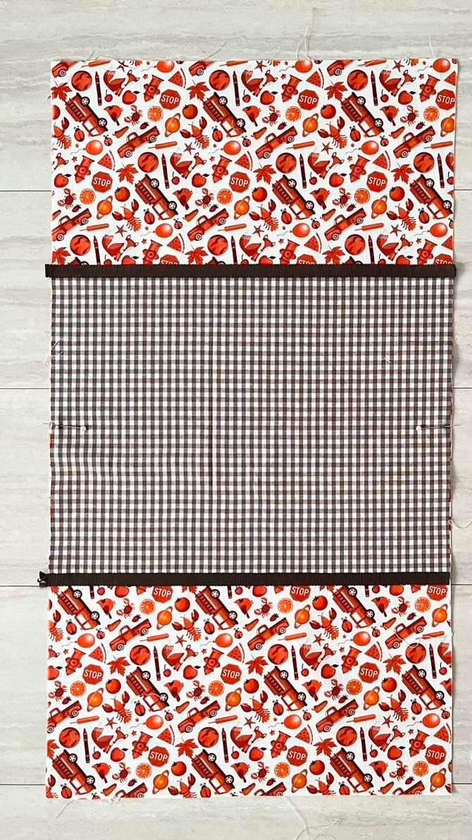 底になる布を本体の上に重ねて縫います。