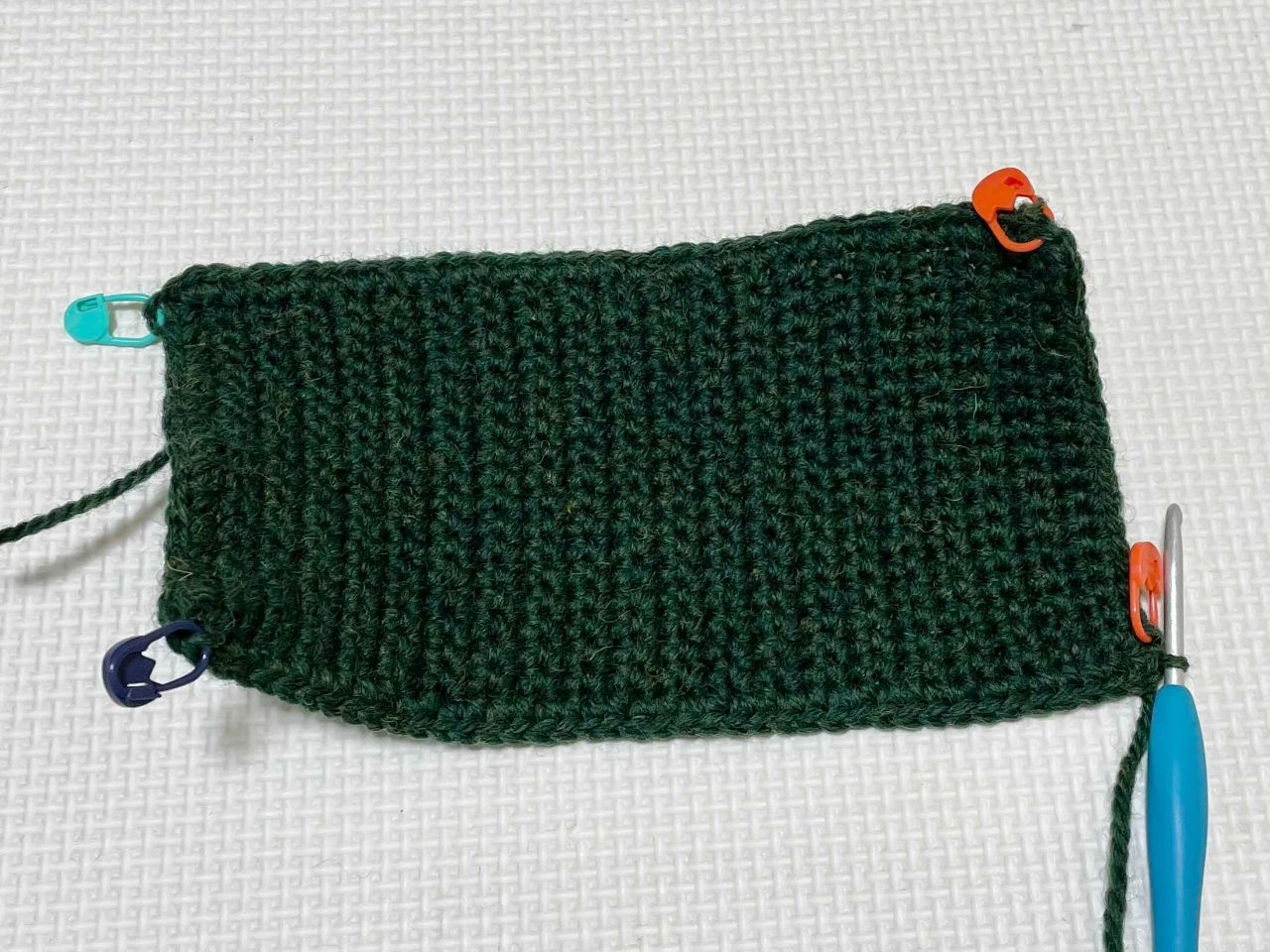 作り目をくさり8目で編んだら、輪にしてくるくる細編みしていきます。