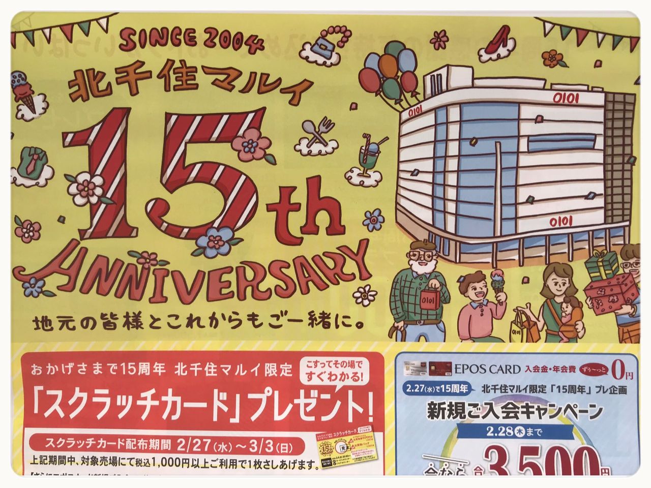 みなさま、いつもご利用ありがとうございます!たくさんのお客様にご来店いただき、オカダヤも北千住マルイの中で15周年を迎えることができます。本当にありがとうございます!