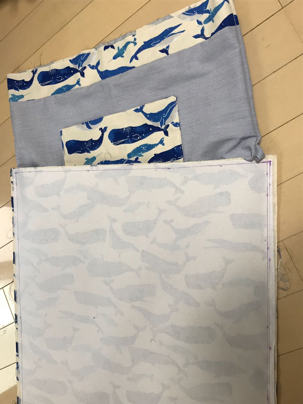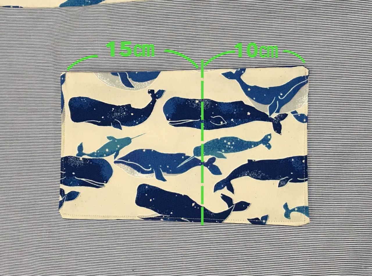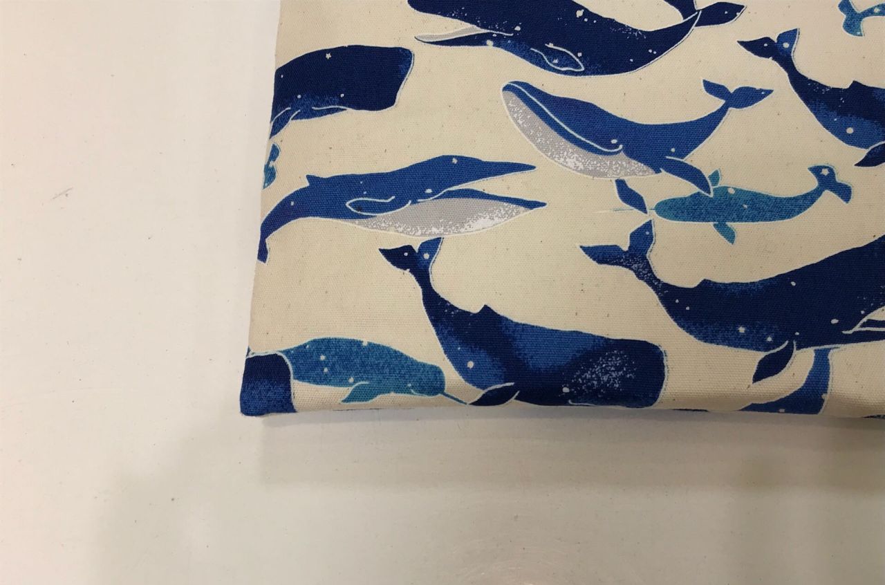 クジラ柄の生地にひとめぼれをして作ることになったものです(´- `*)