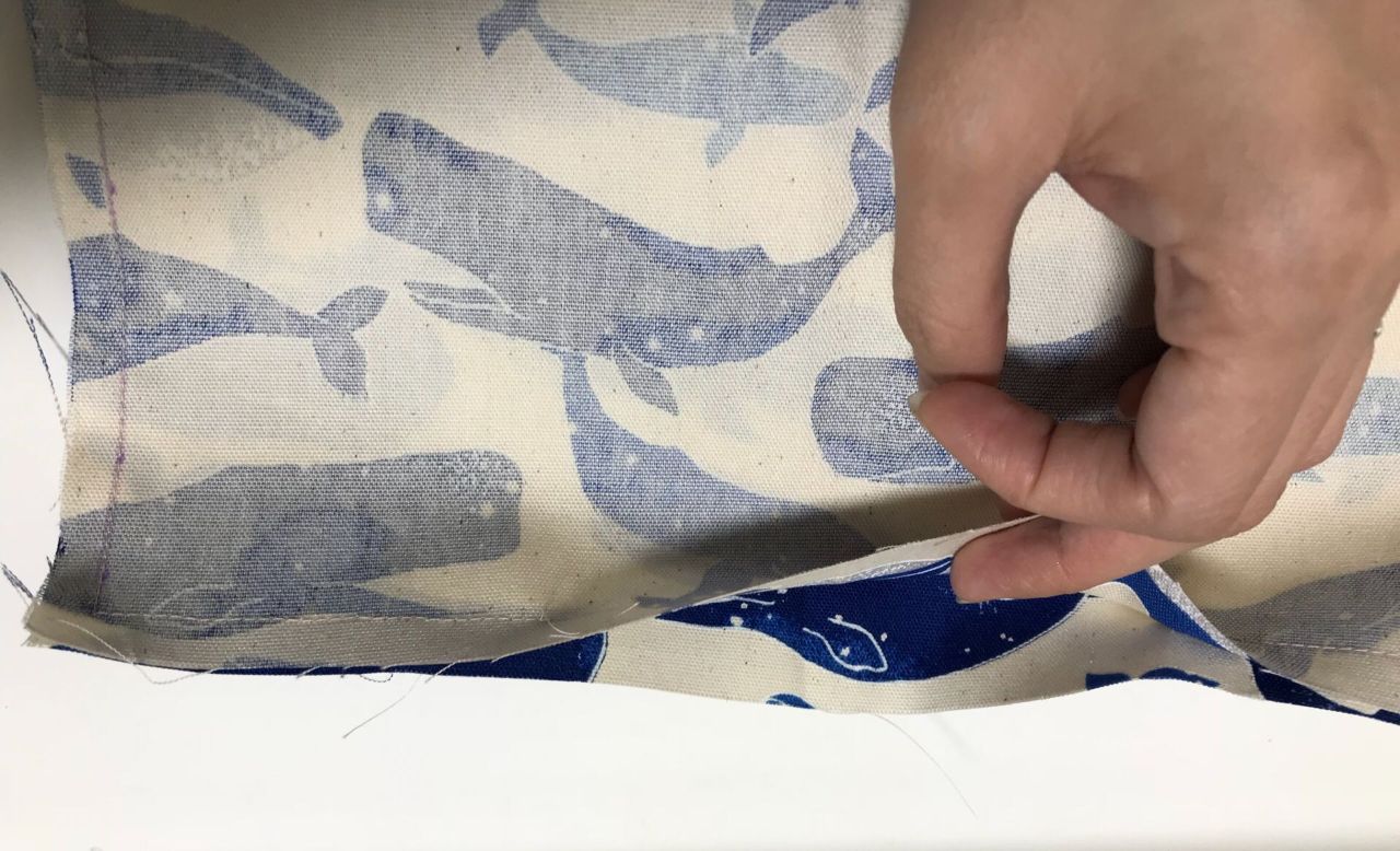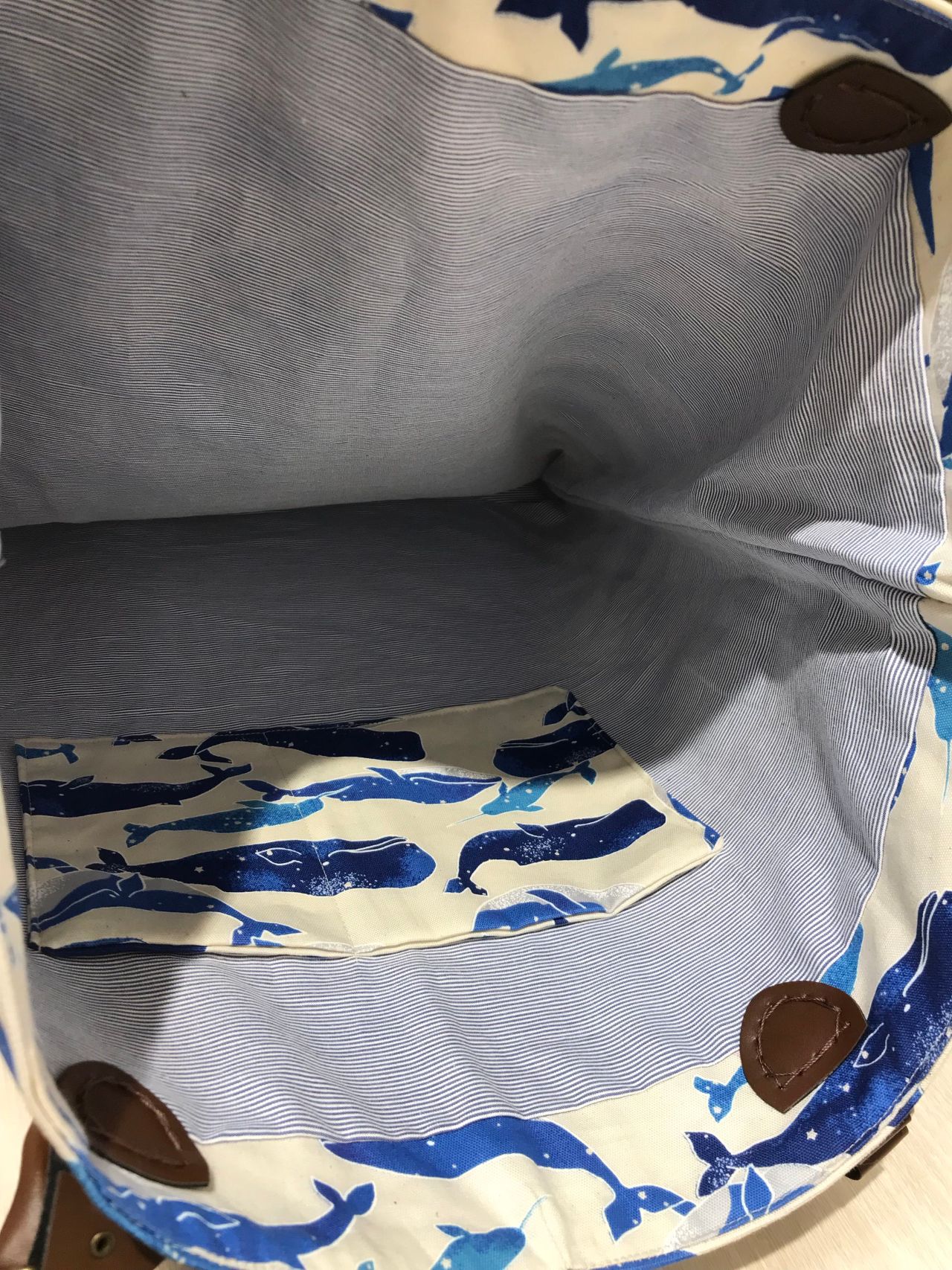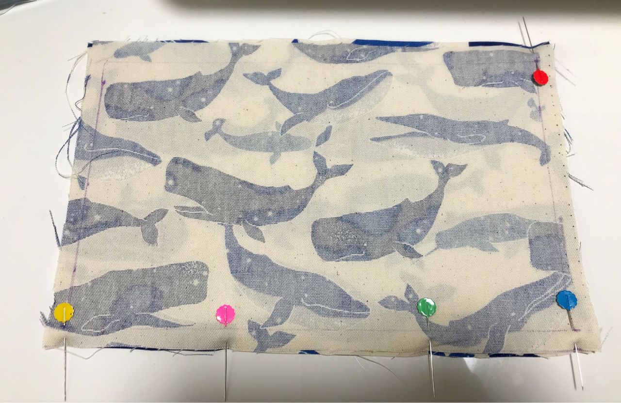 クジラ柄の生地にひとめぼれをして作ることになったものです(´- `*)