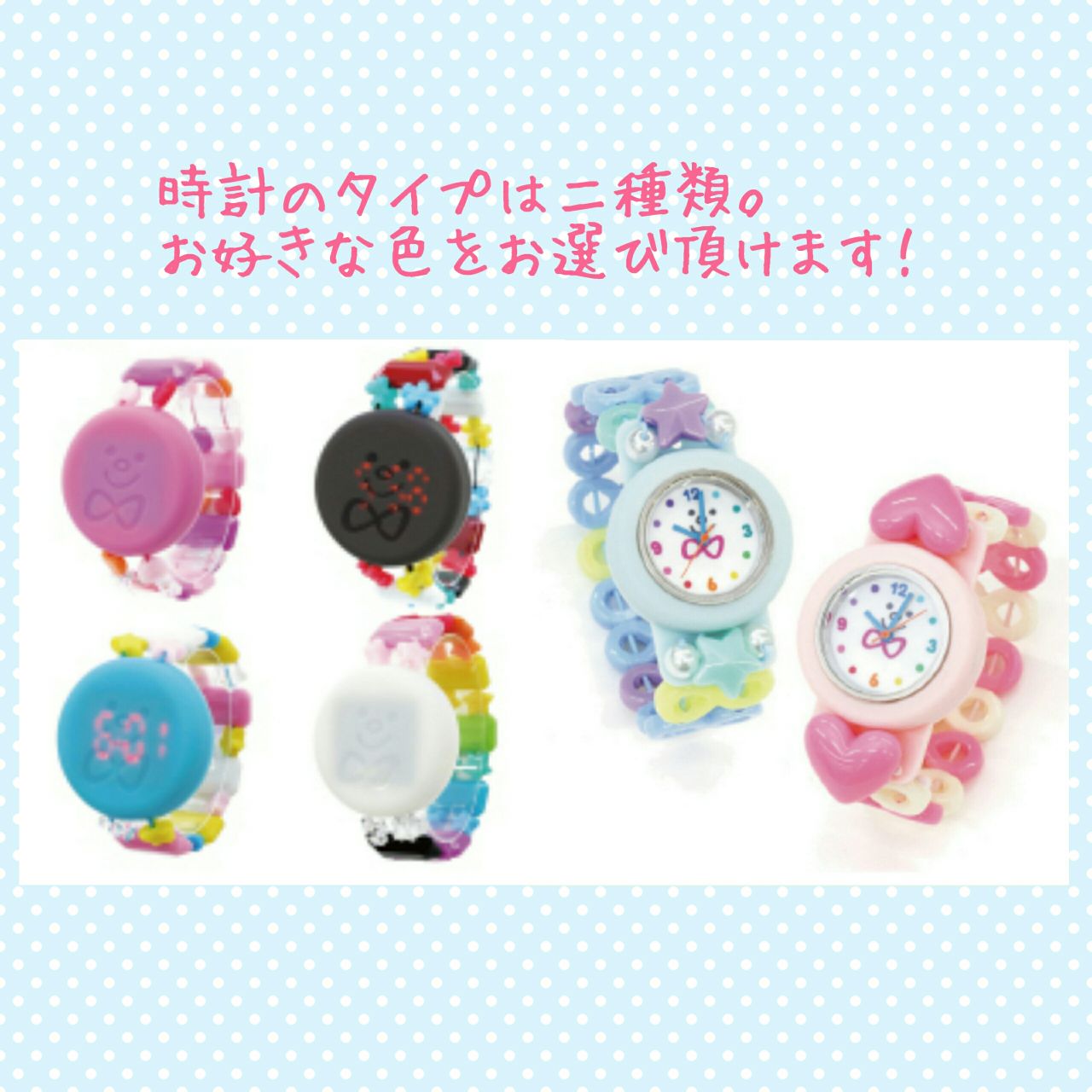 好きな色のビーズを選んで通したら、可愛い腕時計の完成!