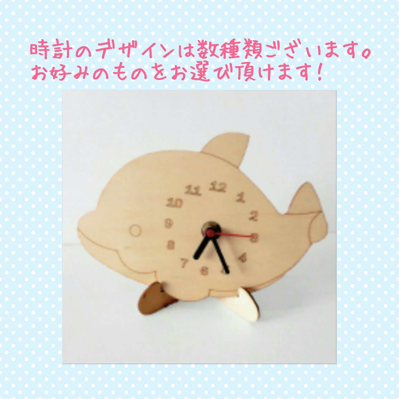 デザインカットされている木のパネルに色を塗って、組み立てて自分だけのオリジナル時計を作りましょう♪