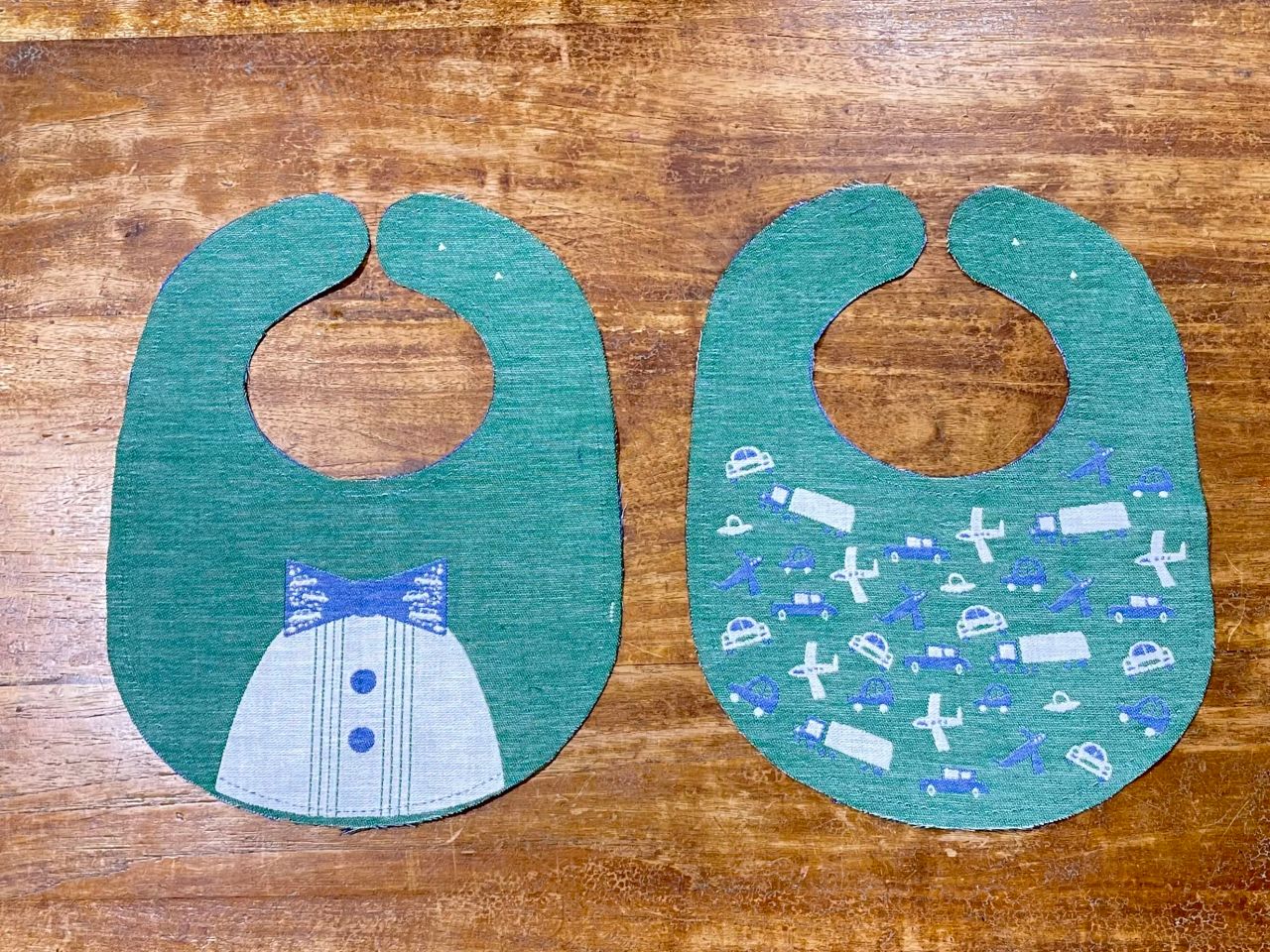 ●出来上がりサイズ:スタイ…約横19.5cm×縦24.5cm 首回り/約29cm~32.5cm 巾着…約横13.5cm×縦17.5cm