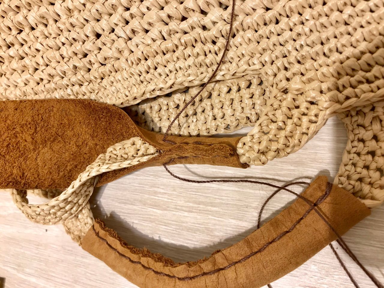 持ち手に本革を縫い付けおしゃれ度アップ♡