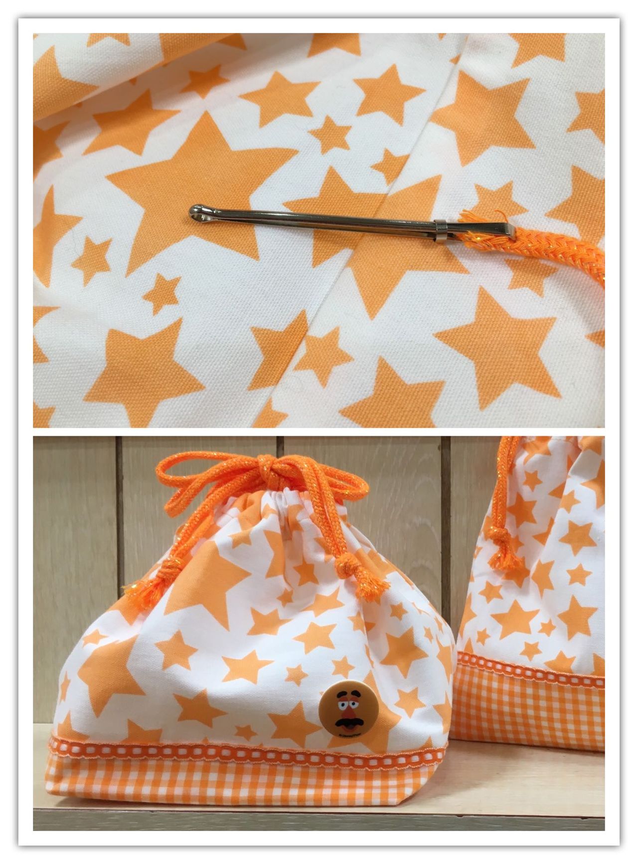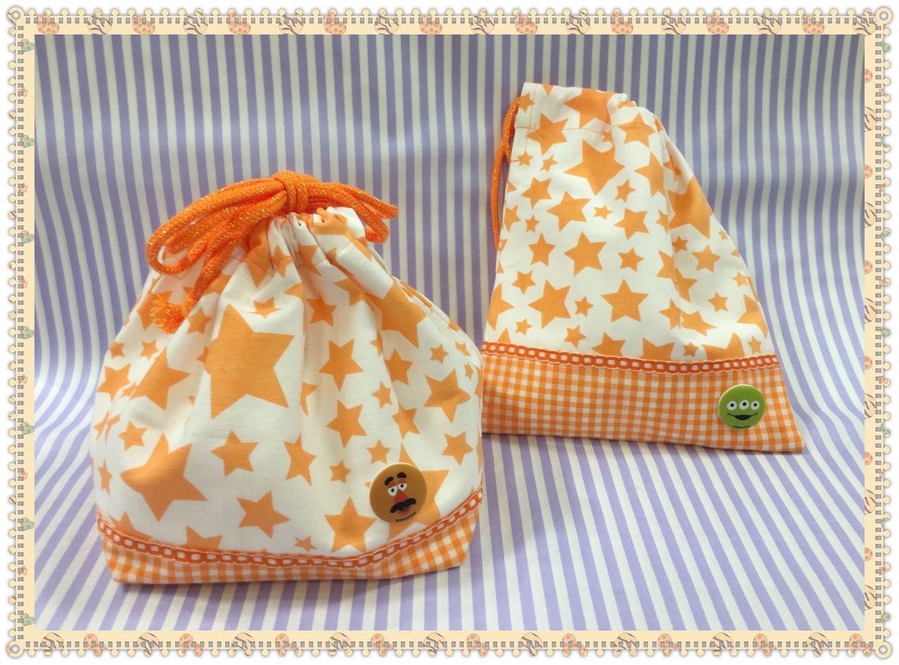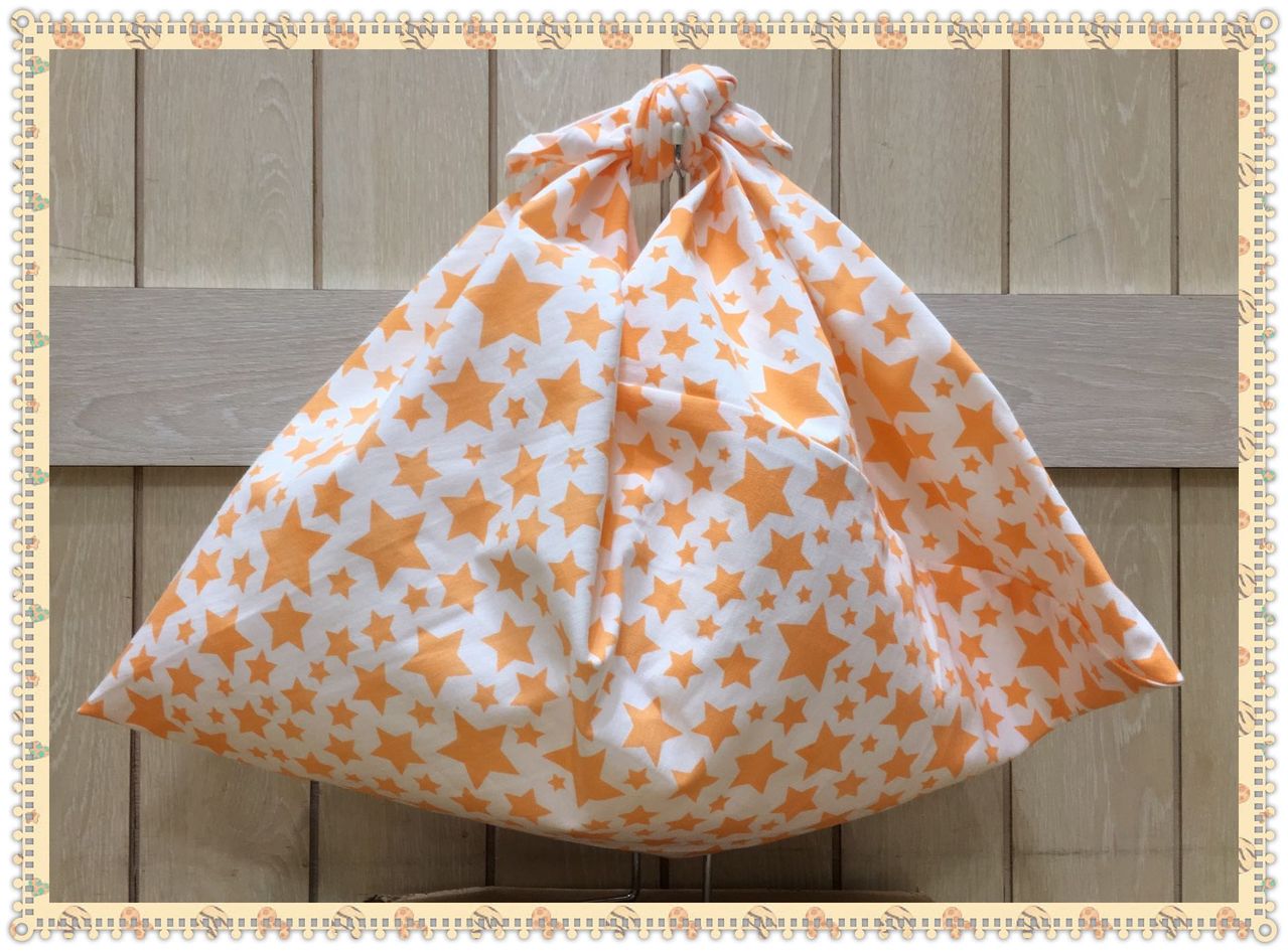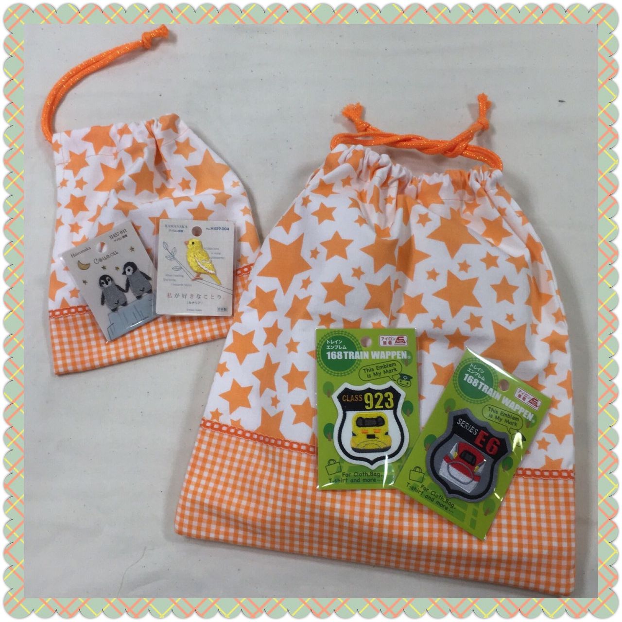 しかし子供達は雨にも負けズ、風にも負けズ、そして雪にも負けズ…⁉︎そんな元気なキッズに負けない元気カラー!オレンジ☆そして男女を選ばない星柄☆この生地で巾着を作ってみました(^.^)