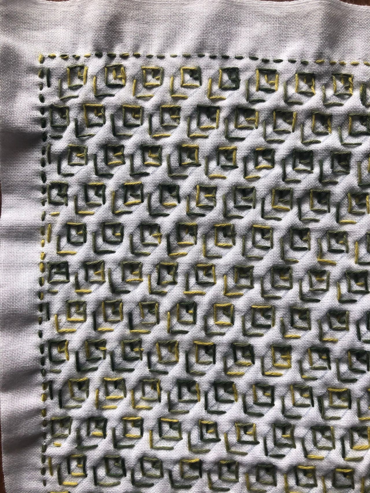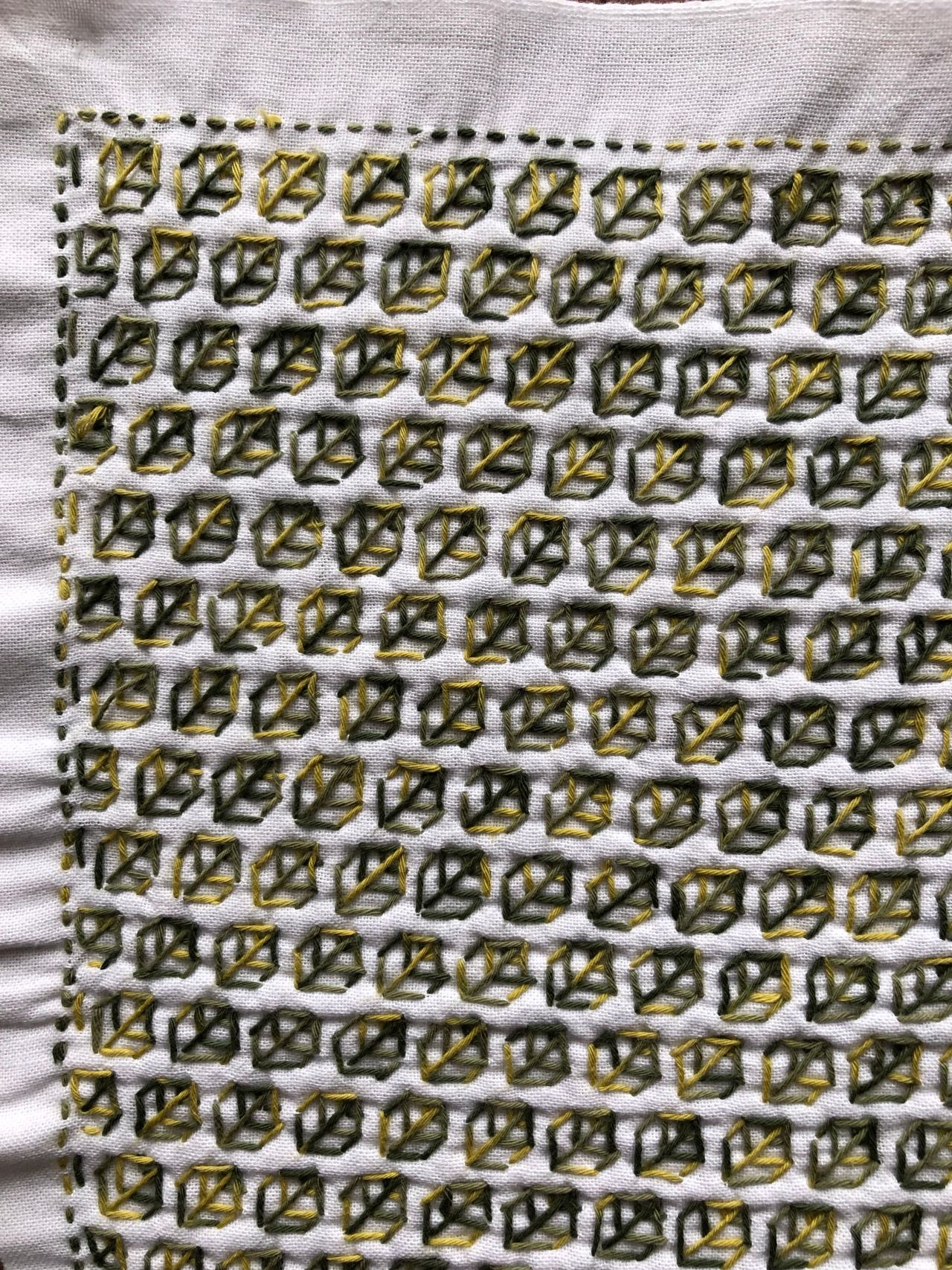 一目刺しの花ふきん、リーフ柄を刺すことにしました。