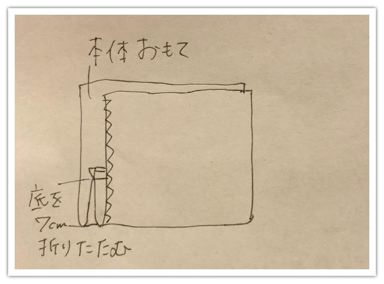 ⑤図のように折りたたみ脇を縫います