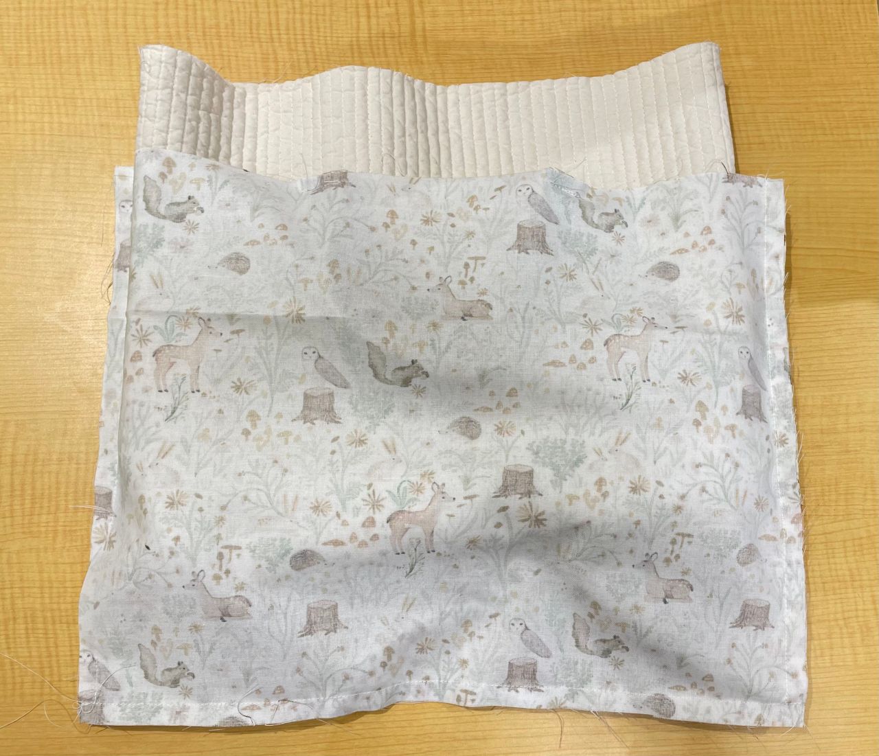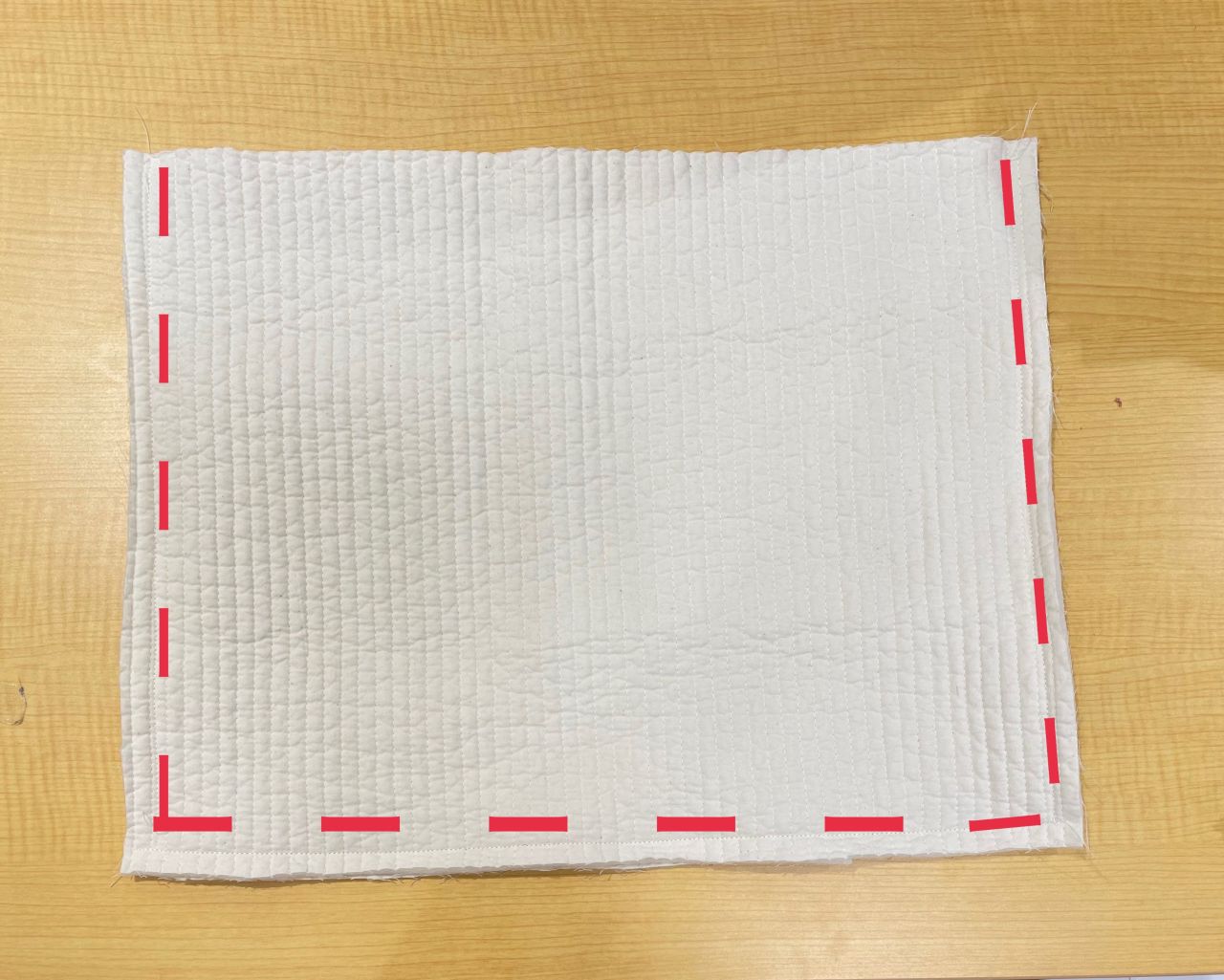 中側が表になるよう重ねて、袋口を合わせ1.5cmのところを一周縫います。