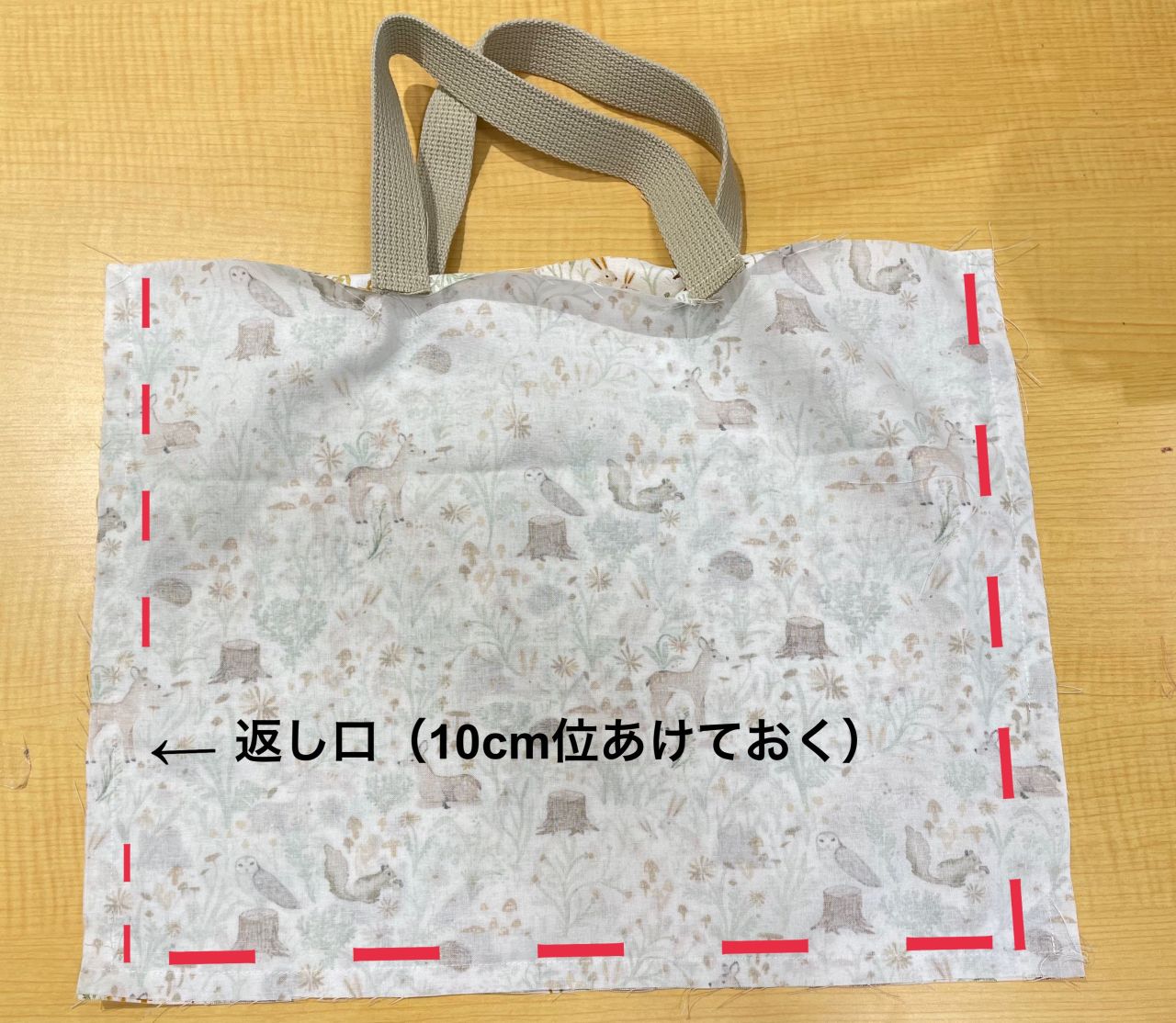 返し口から表に返し、返し口を縫います。
