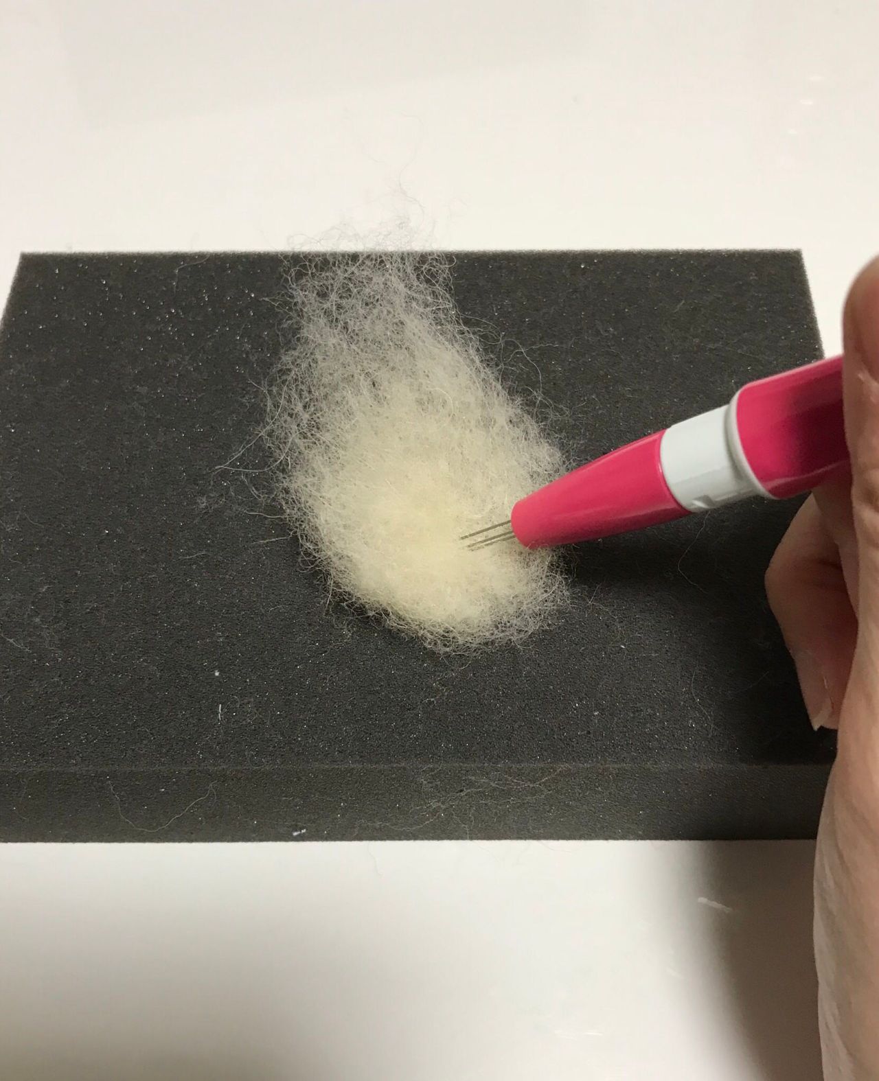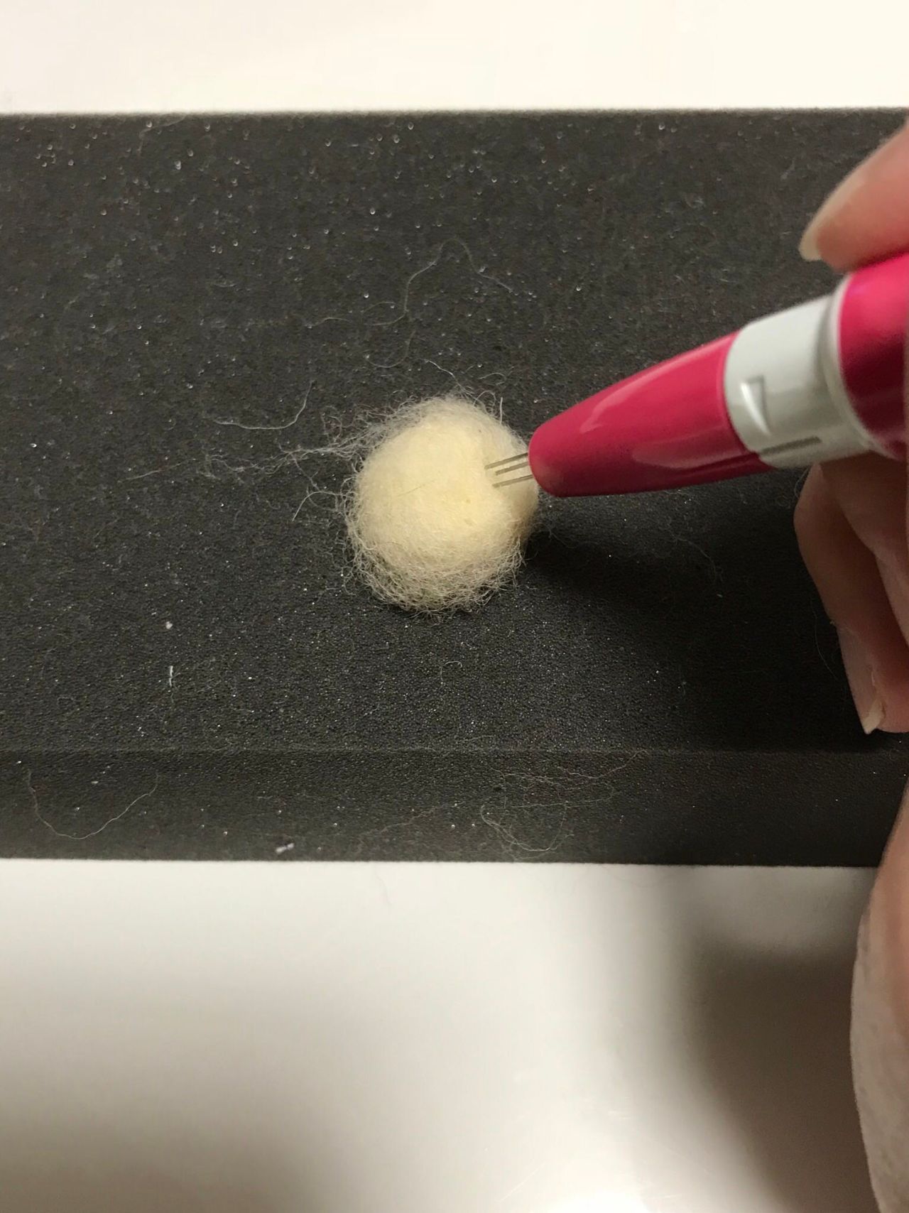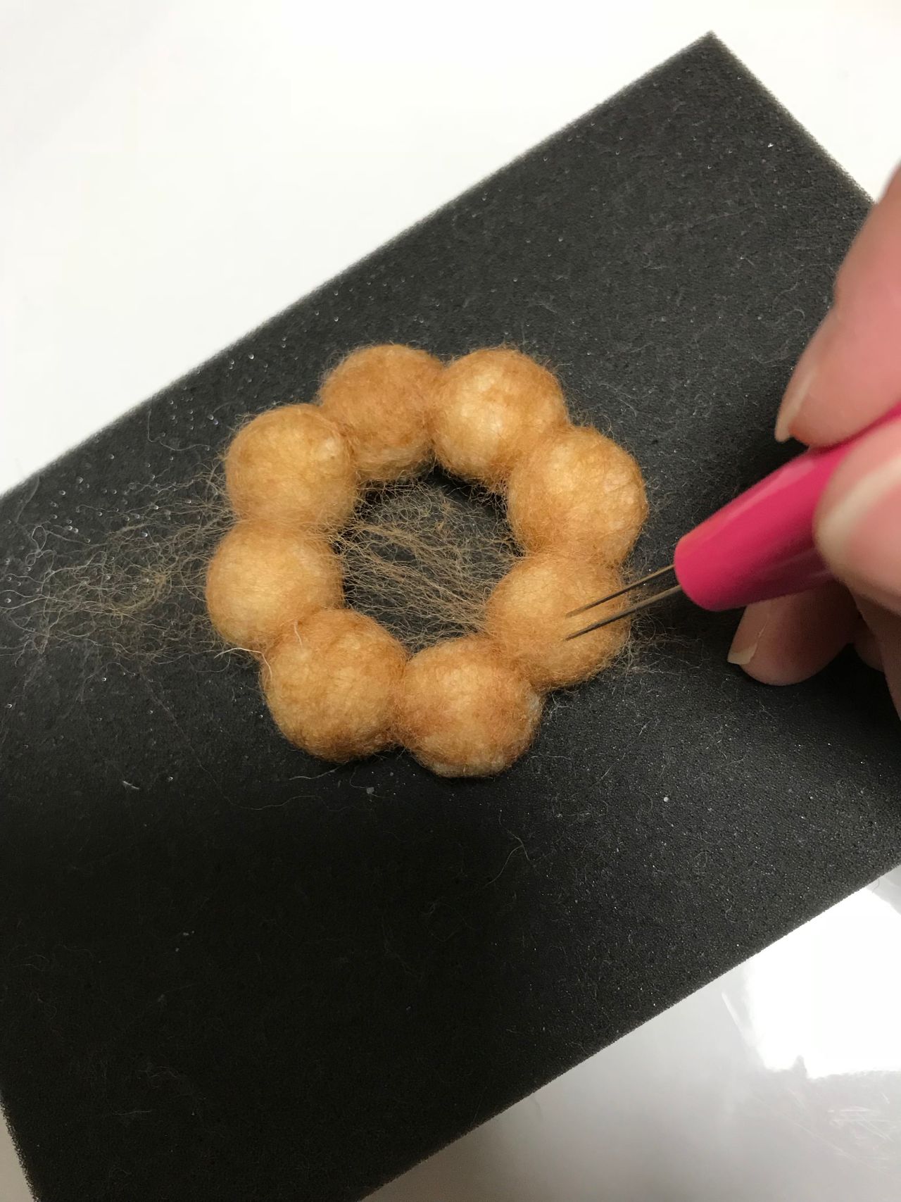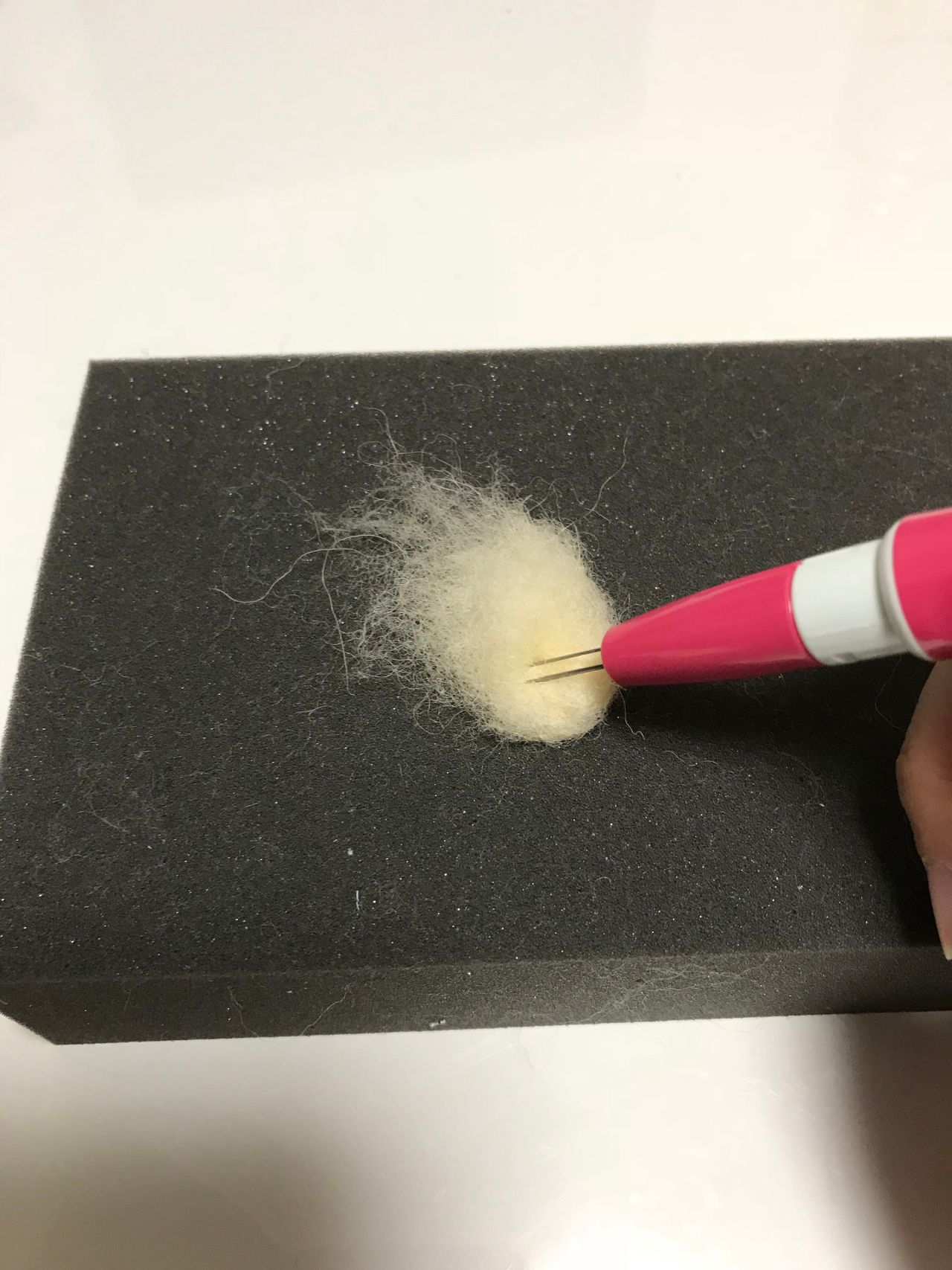 端から丸めてチクチク。使用しているのは固まるのが早いニードルわたわた。