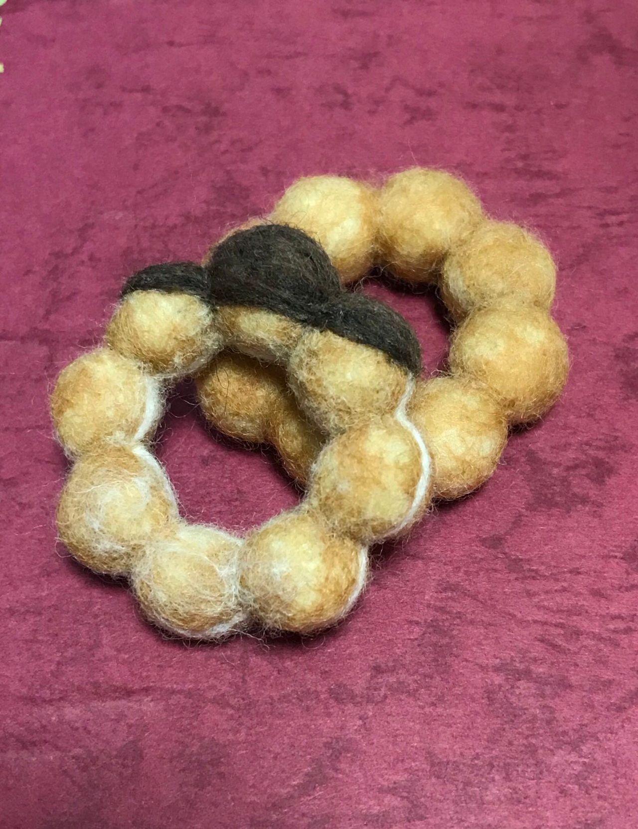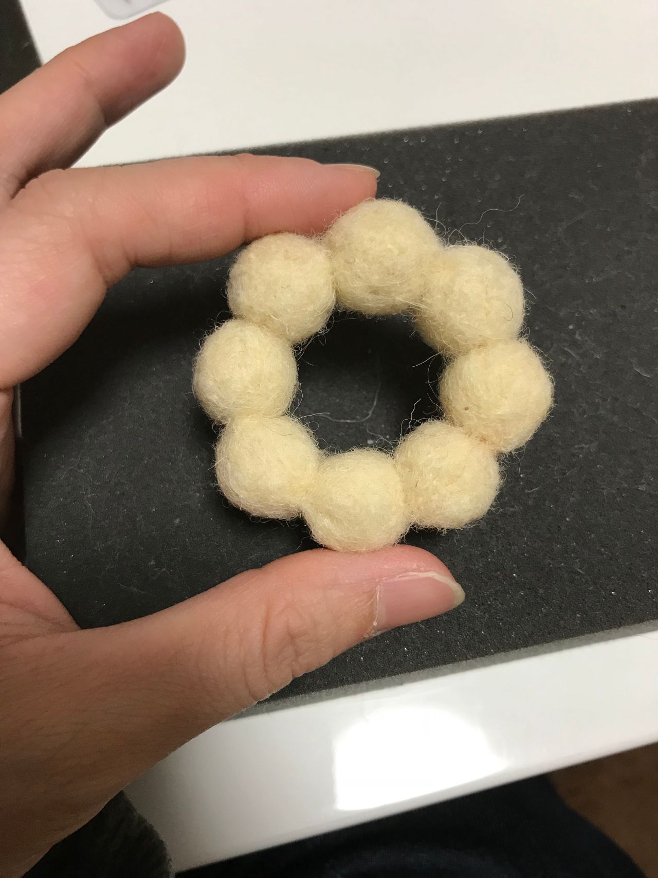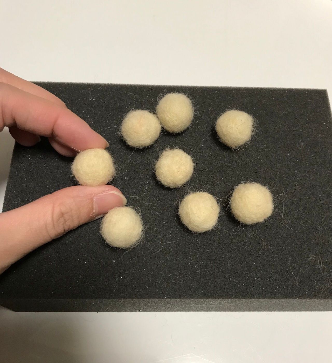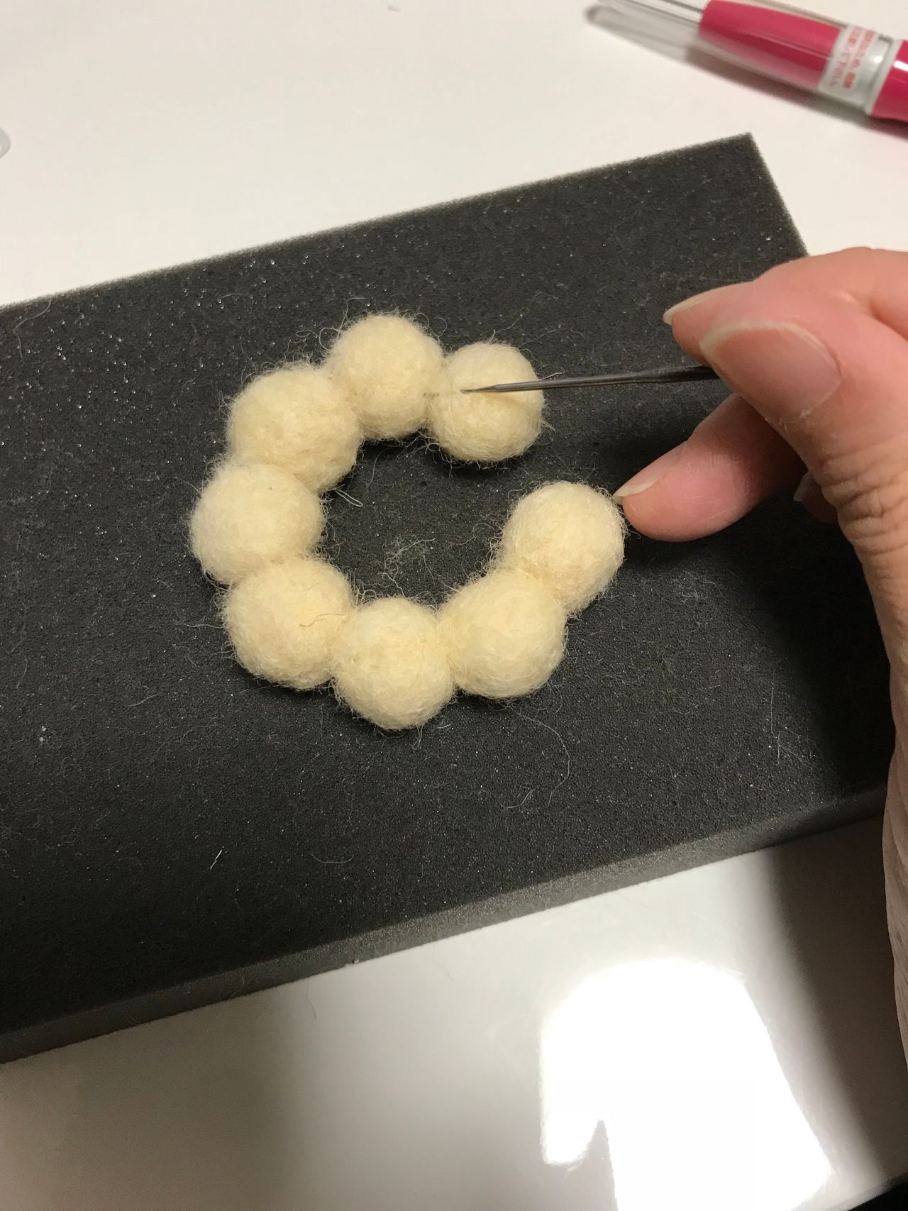 端から丸めてチクチク。使用しているのは固まるのが早いニードルわたわた。