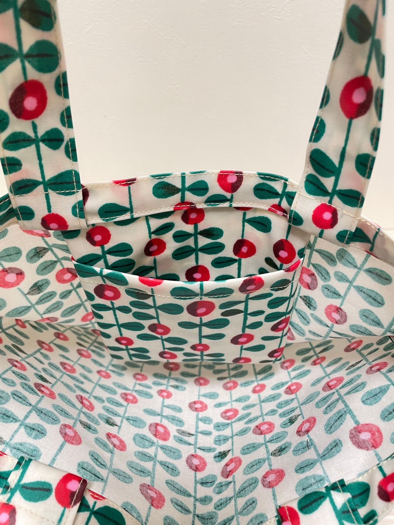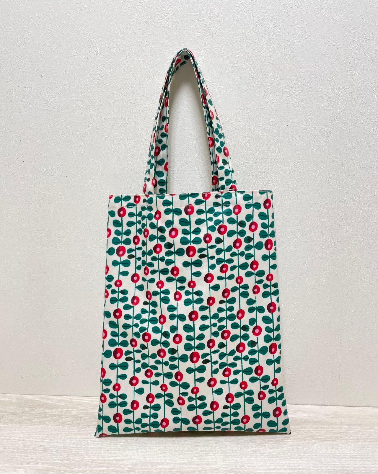 雨の日でも出かけたくなるような真っ赤なリンゴンベリーが描かれたバッグです♡