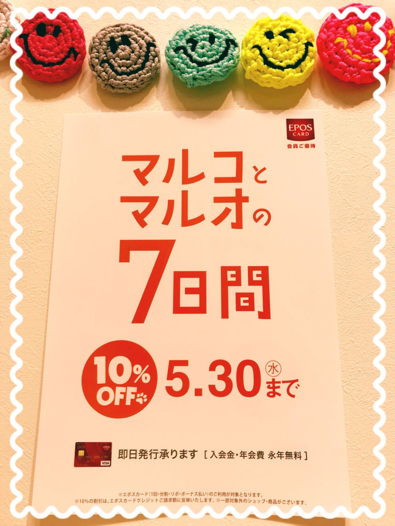 エポスカードのクレジット払いで、10%OFF‼︎のお得な1週間がはじまりますよ〜‼︎