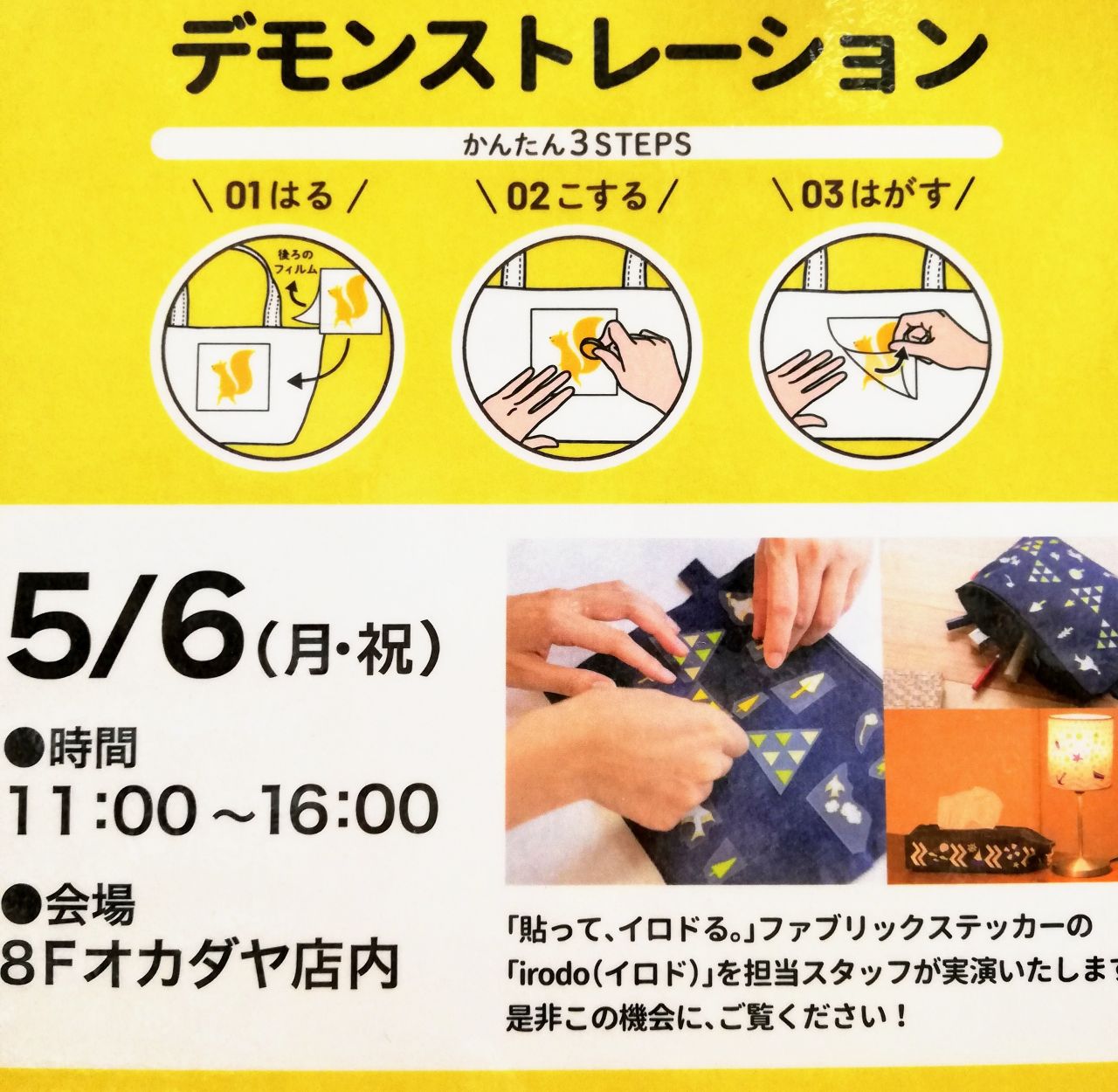5/6開催!画期的な布シールのデモ販します!