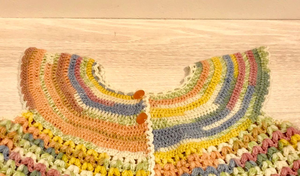 1、くさり編みの作り目をし、長編みでヨークを編む