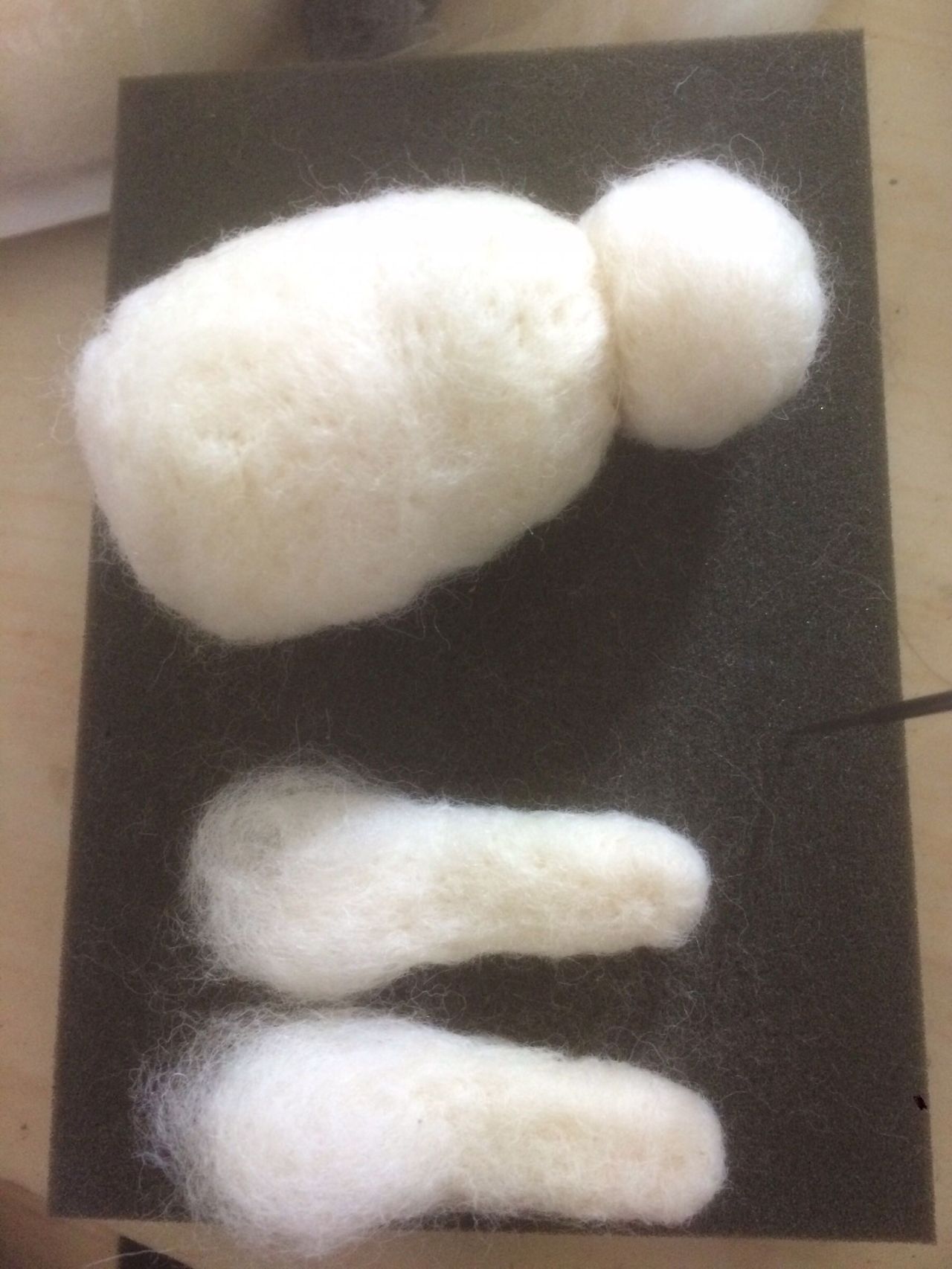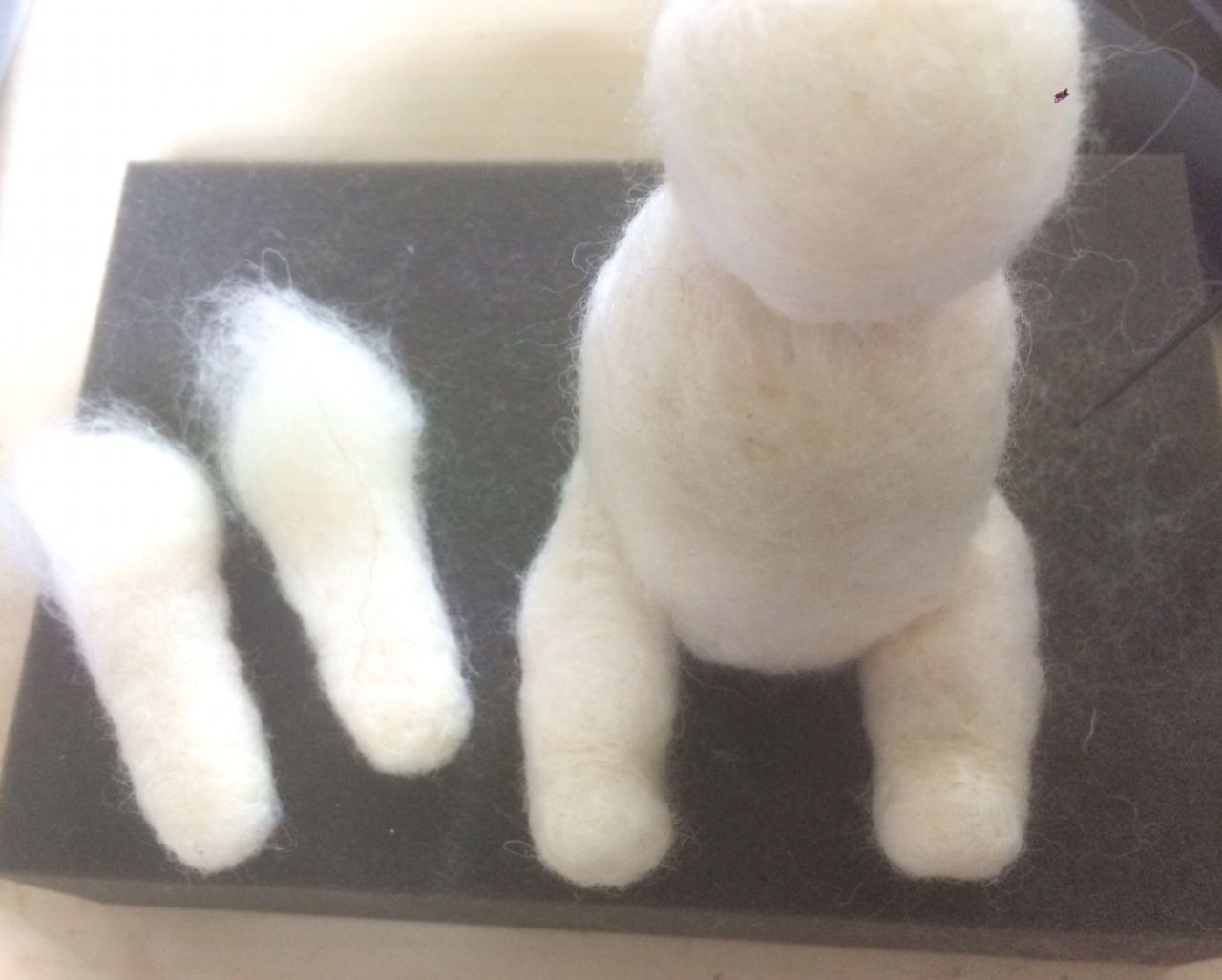 まずはふわふわの羊毛を説明書の量を参考に取り分けて、パーツごとに差し固めていきます。