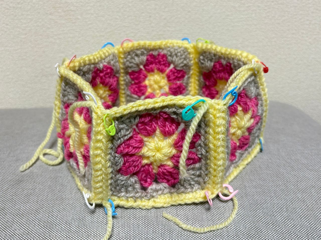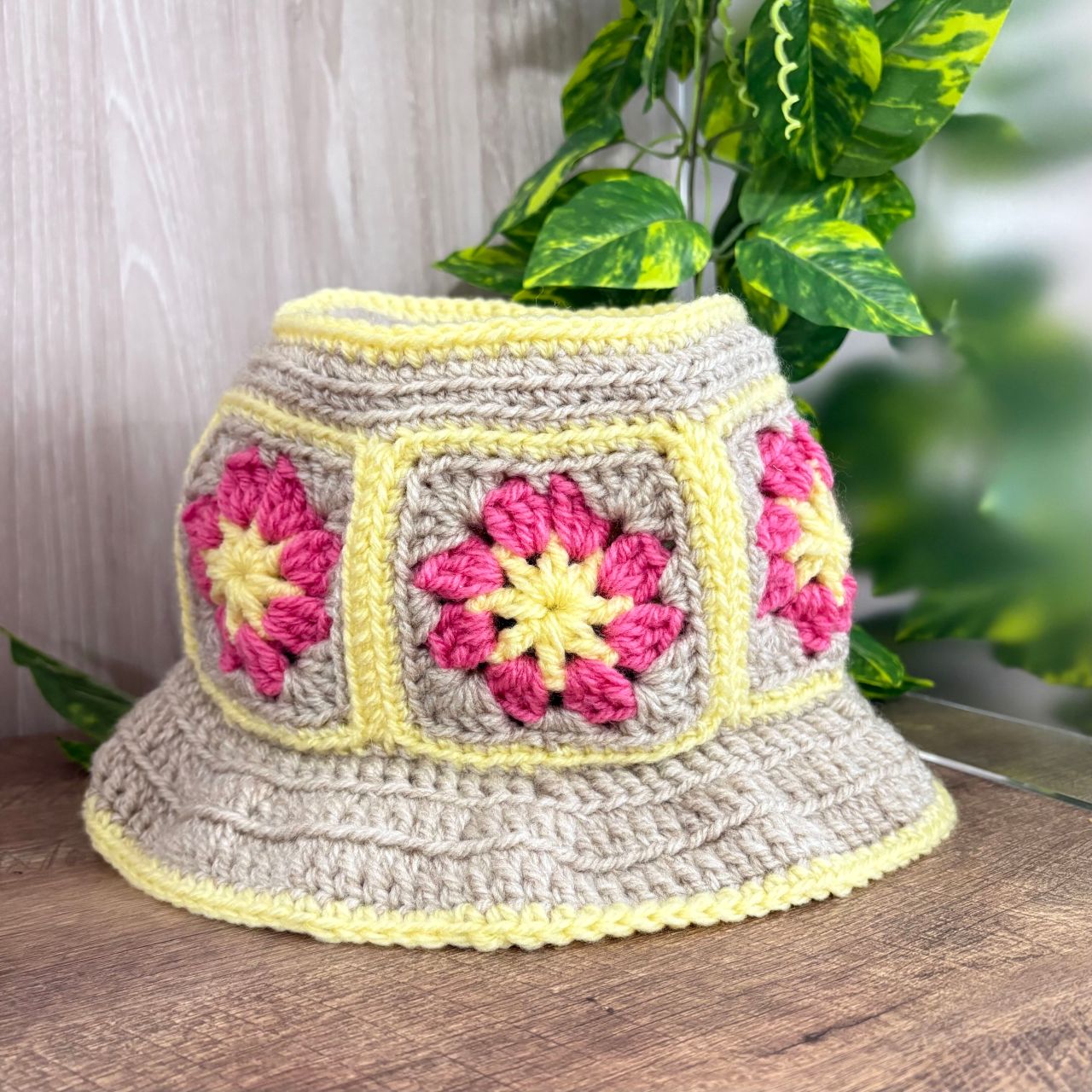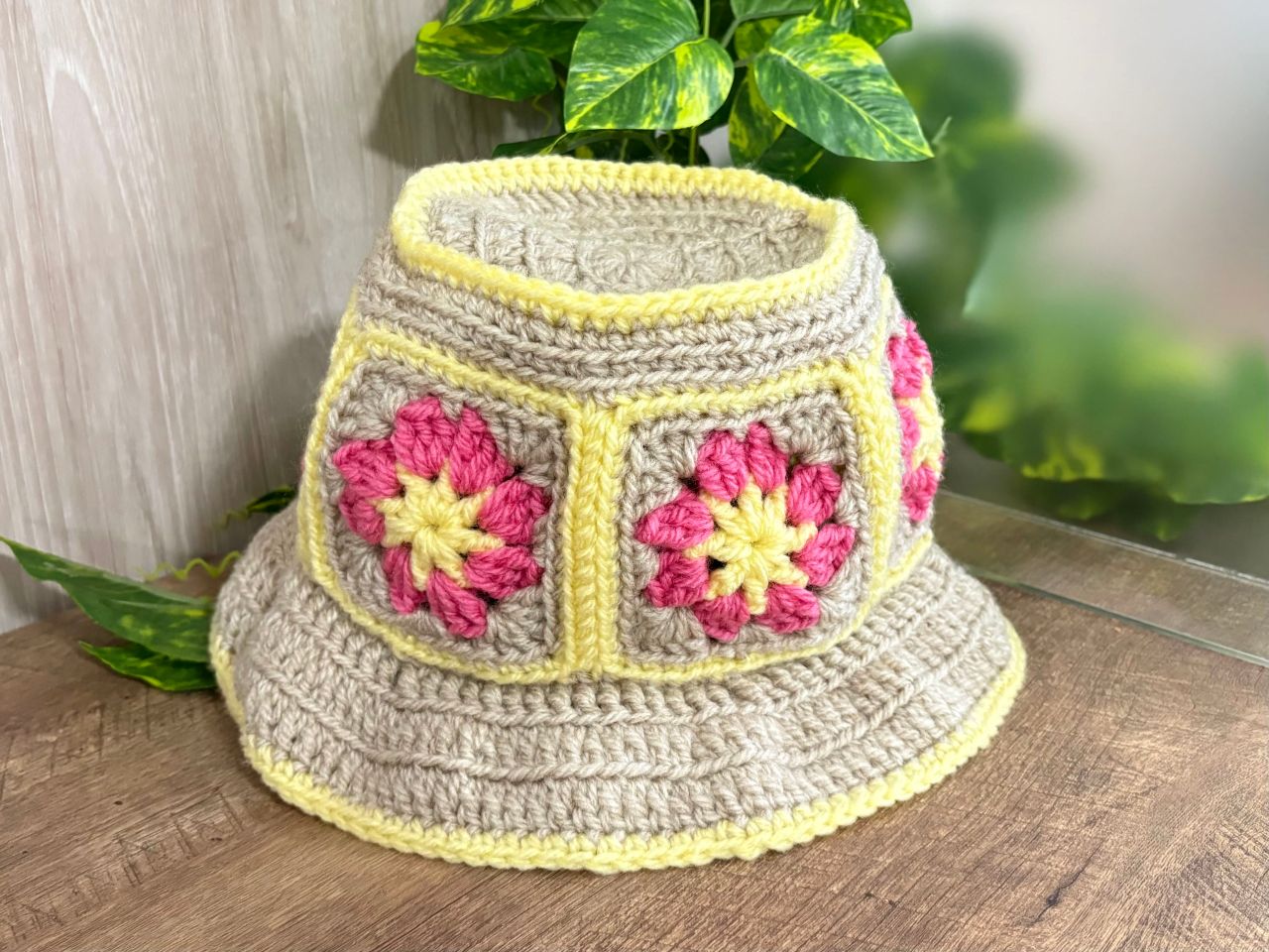 今回は春にぴったりのカラーで、モチーフ編みの帽子を編みました。