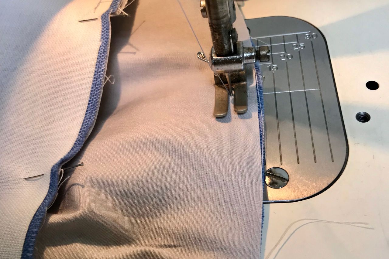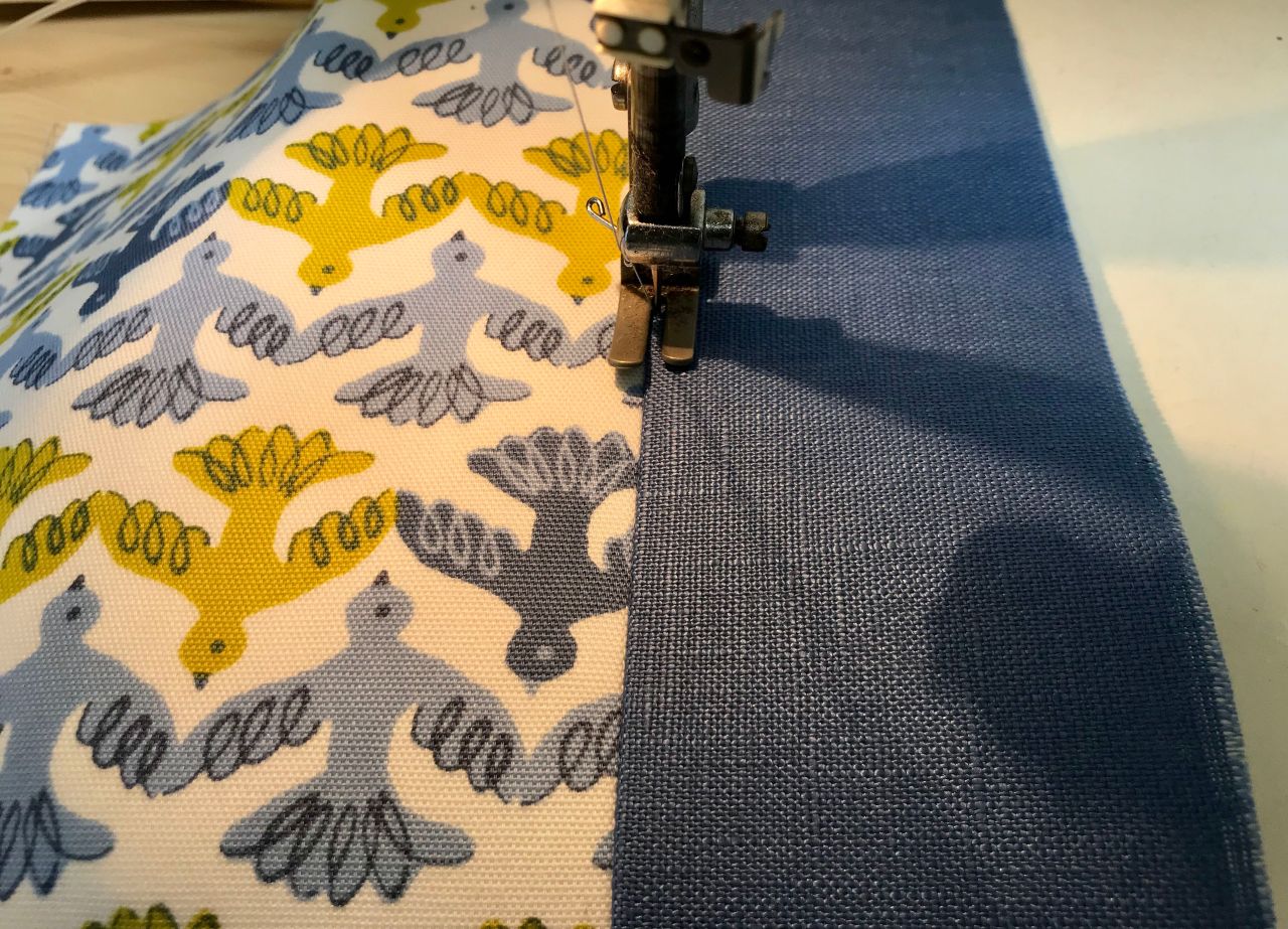 ⑤表袋と裏袋を中表に重ね袋口を縫います