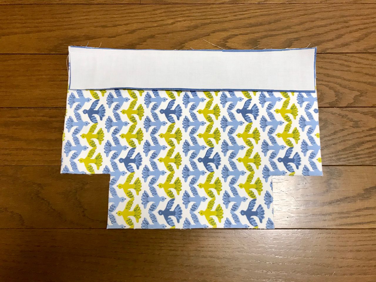 ②本体表・切り替え・持ち手表に接着芯を貼ります。芯は全体的に小さく(2mm位)切っておくと貼りやすいです