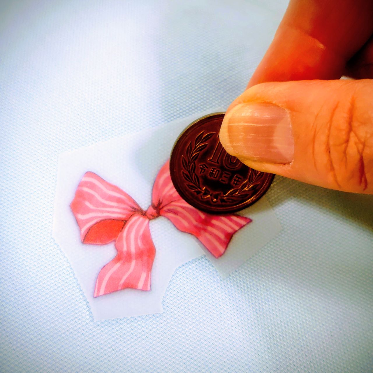 貼る位置に置いてコインで表面を擦ります