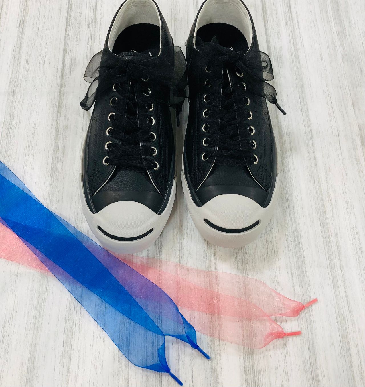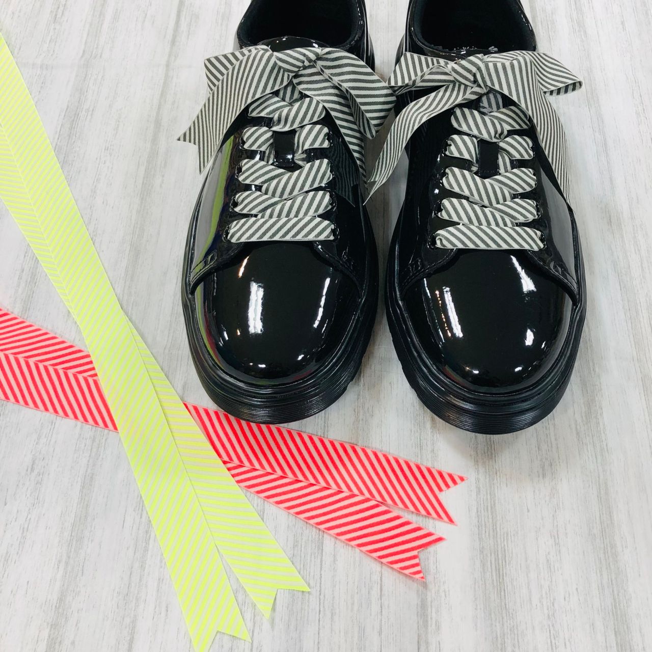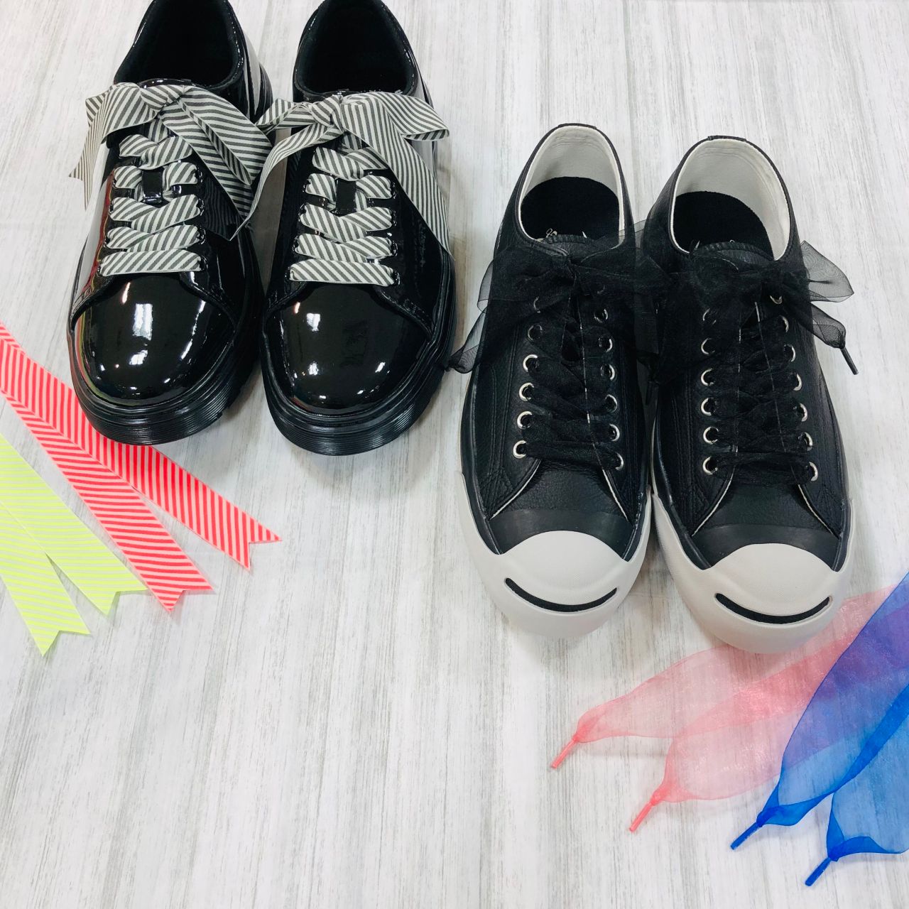 服や季節、イベントなどに合わせて、リボン靴ひもで色や素材感を楽しんではいかがでしょうか?