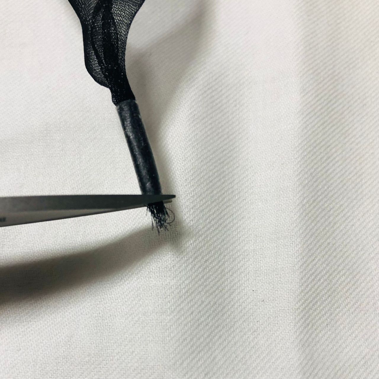 ⚫︎リボン先をハサミでカットする。