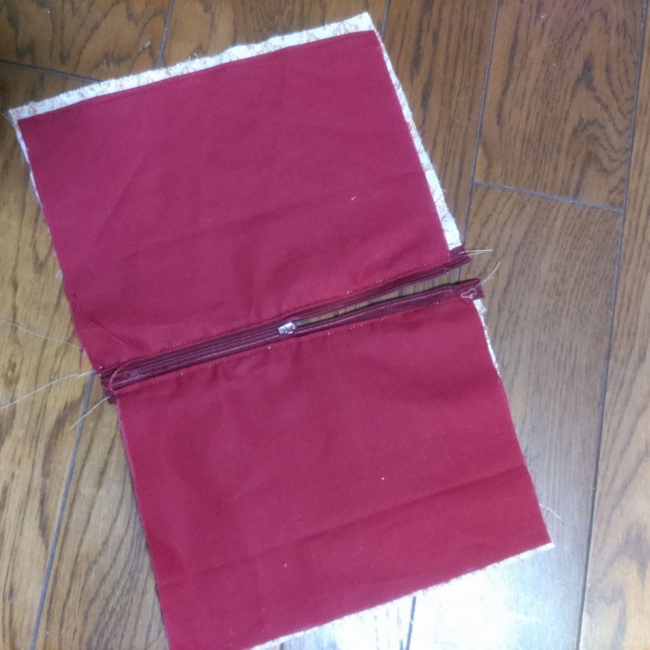 ファスナーを半分以上あけて、表布どうし、内布どうしを中表になるようにたたみ直します。