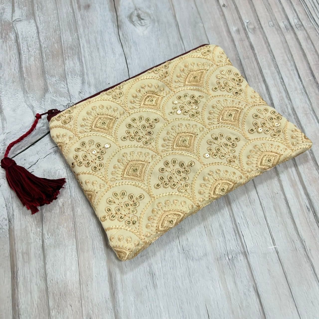 インド刺繍カットクロスで基本のポーチを作ってみました!